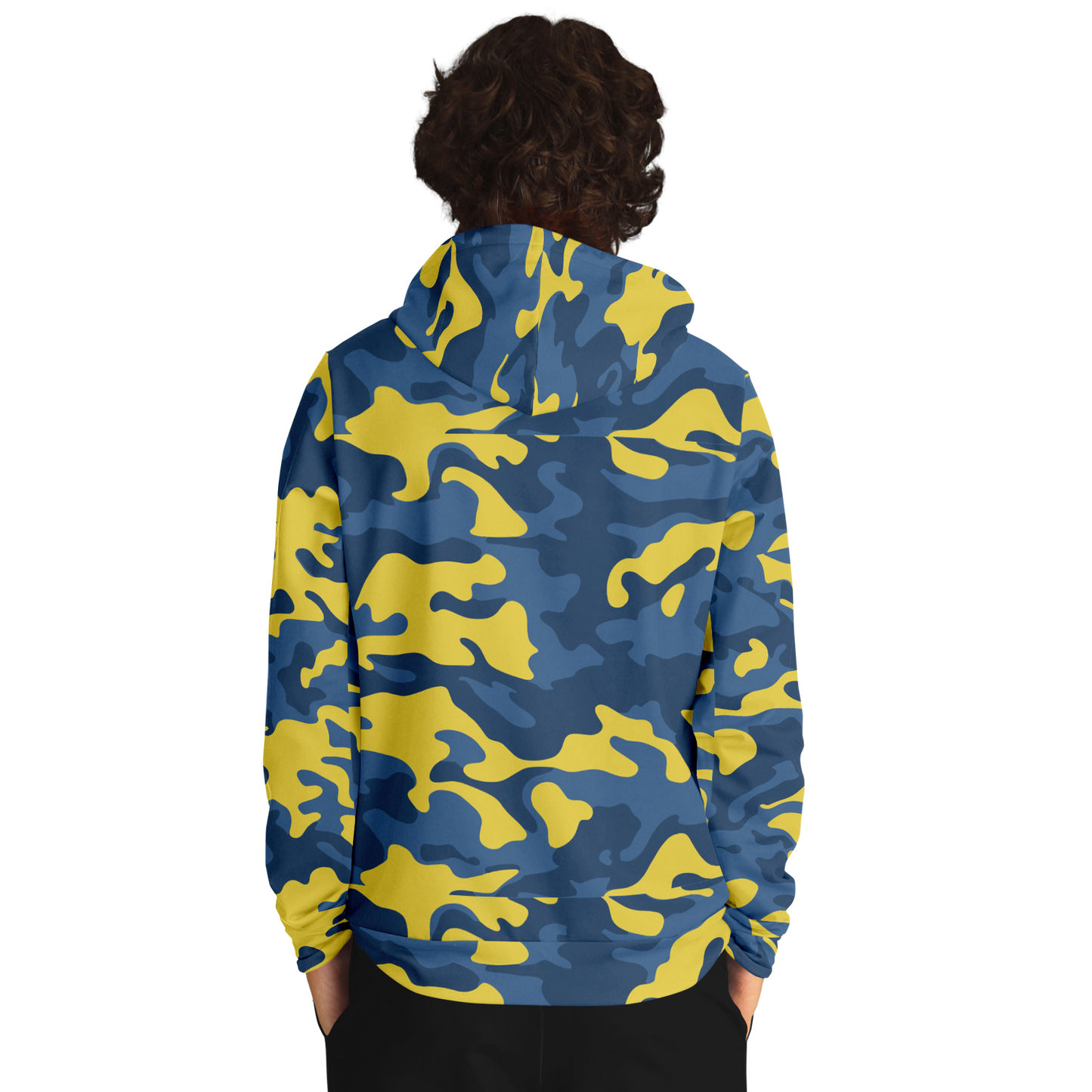 Blue and Yellow Camo Hoodie | Modern Army-Inspired Pattern