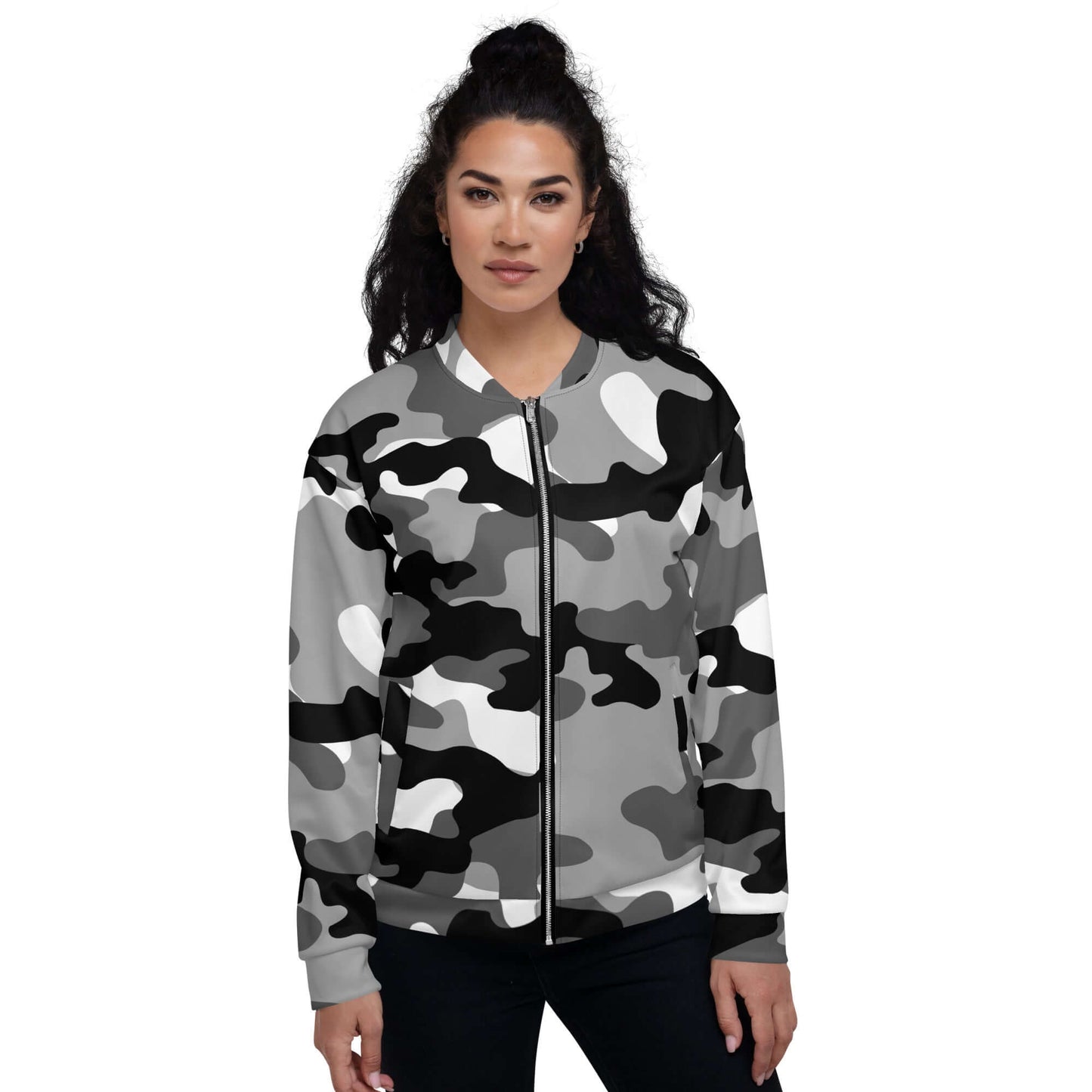 Camo Bomber Jacket | Unisex | Black, White & Gray