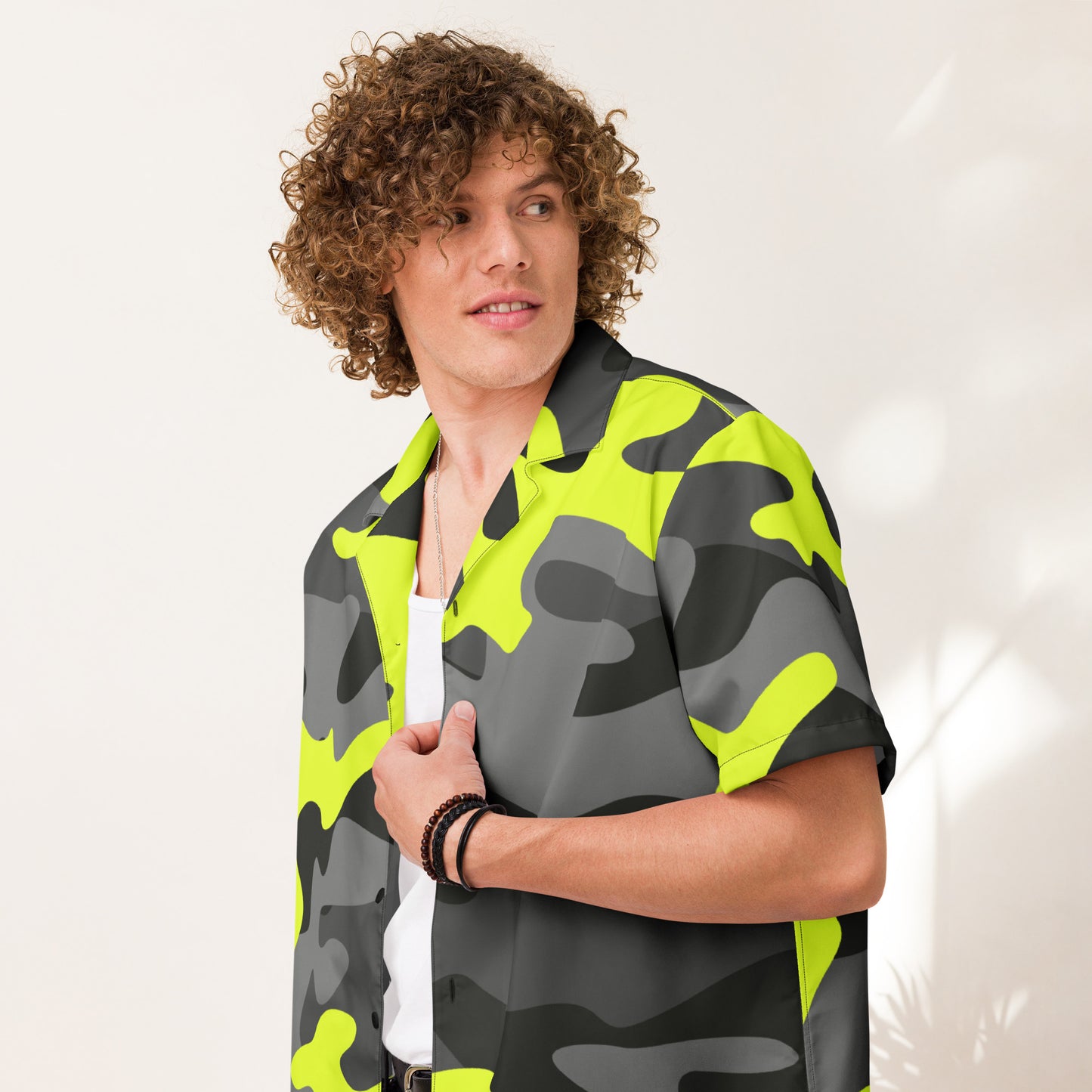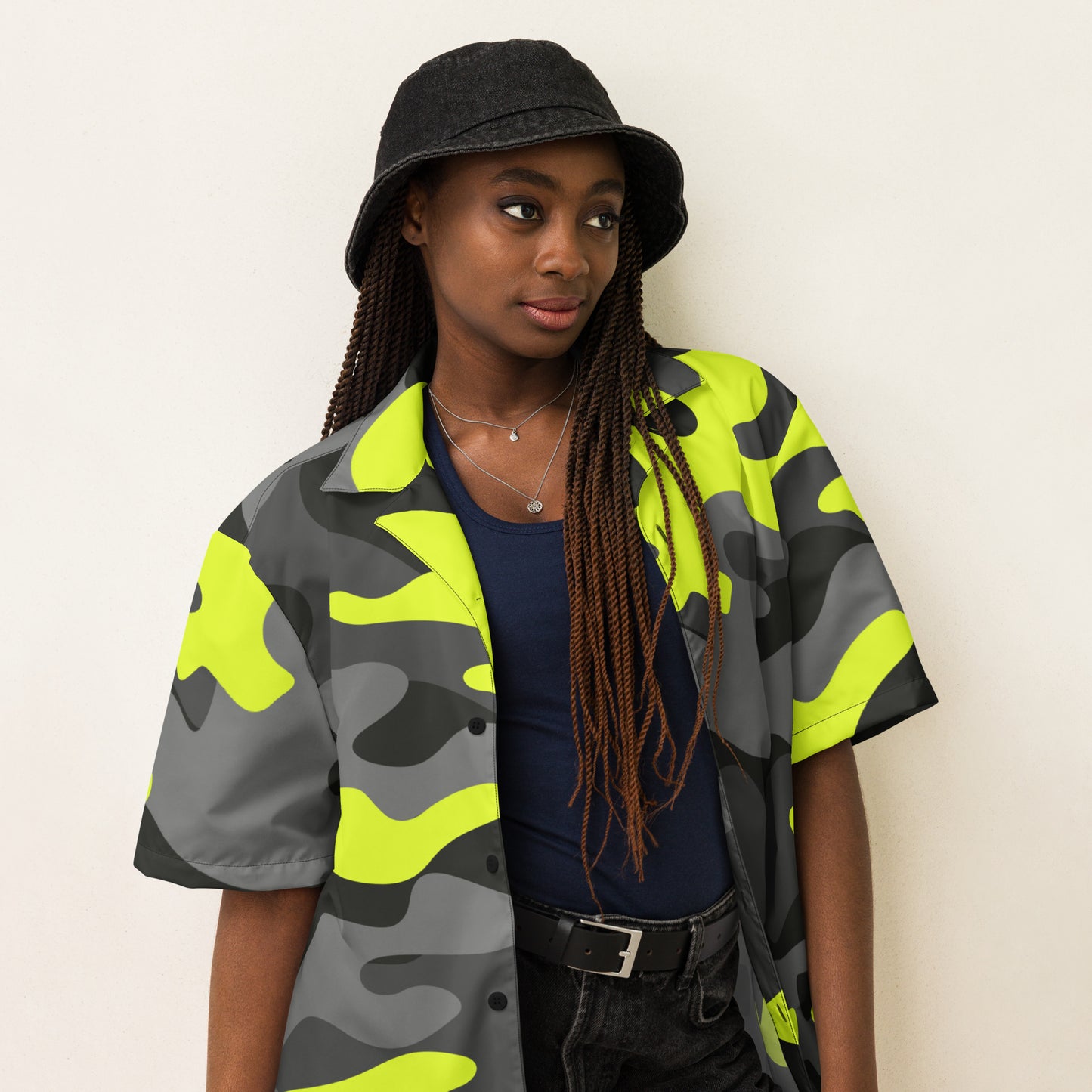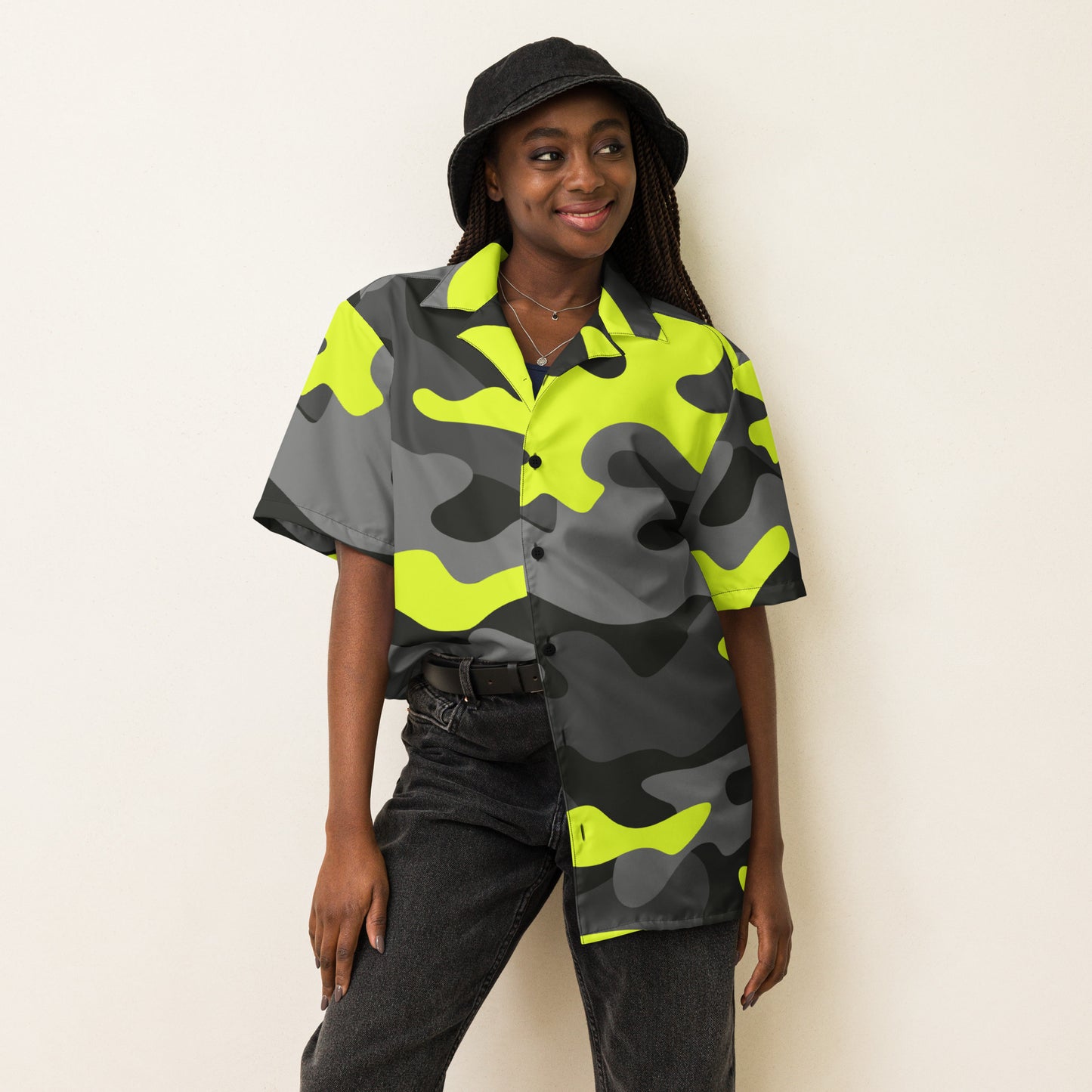 Button Up Shirt | Black, Gray, and Yellow Camo