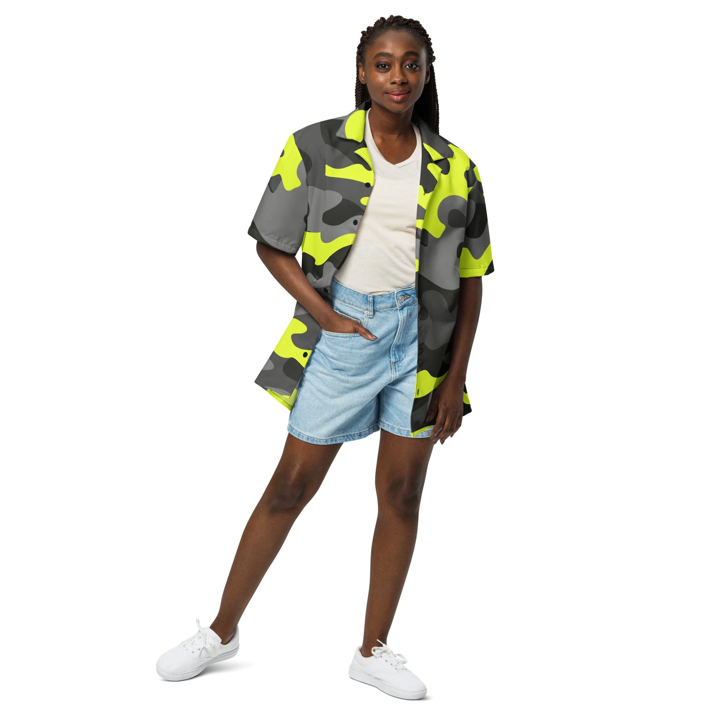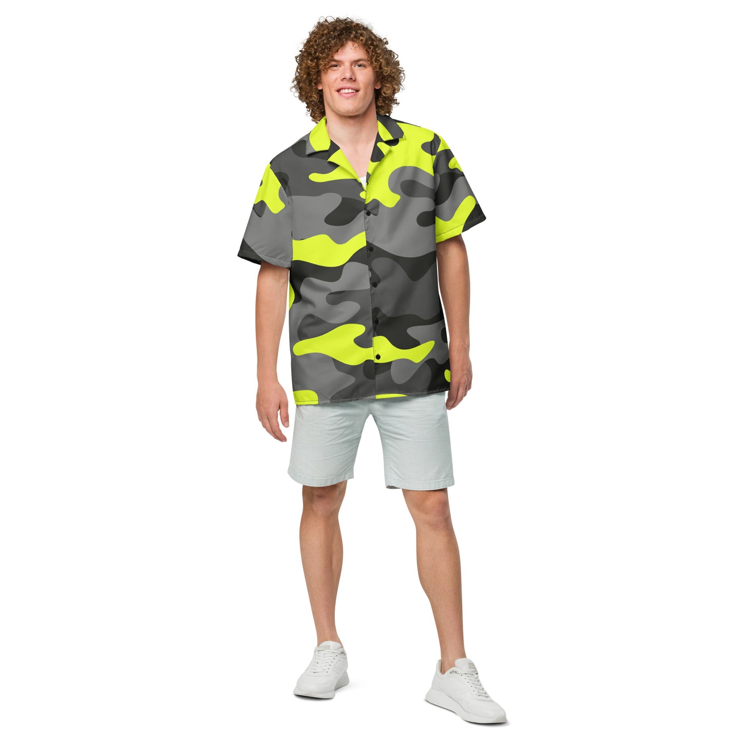 Stay stylish and blend in with the surroundings in our Camo Button Up Shirt. This versatile shirt features a black, gray, and yellow camouflage pattern, perfect for any outdoor enthusiast. Made with high-quality fabric, it offers both comfort and durability. Upgrade your wardrobe and embrace your inner adventurer with this must-have piece.
