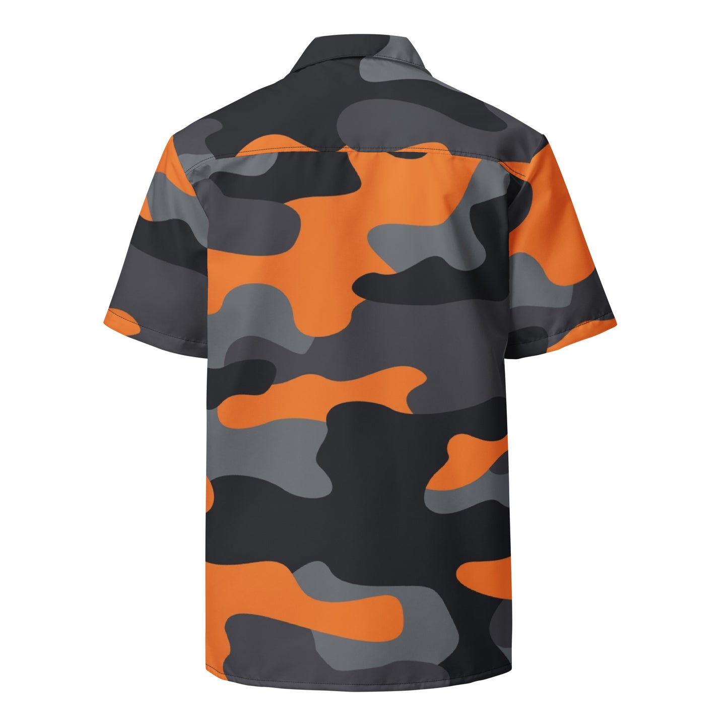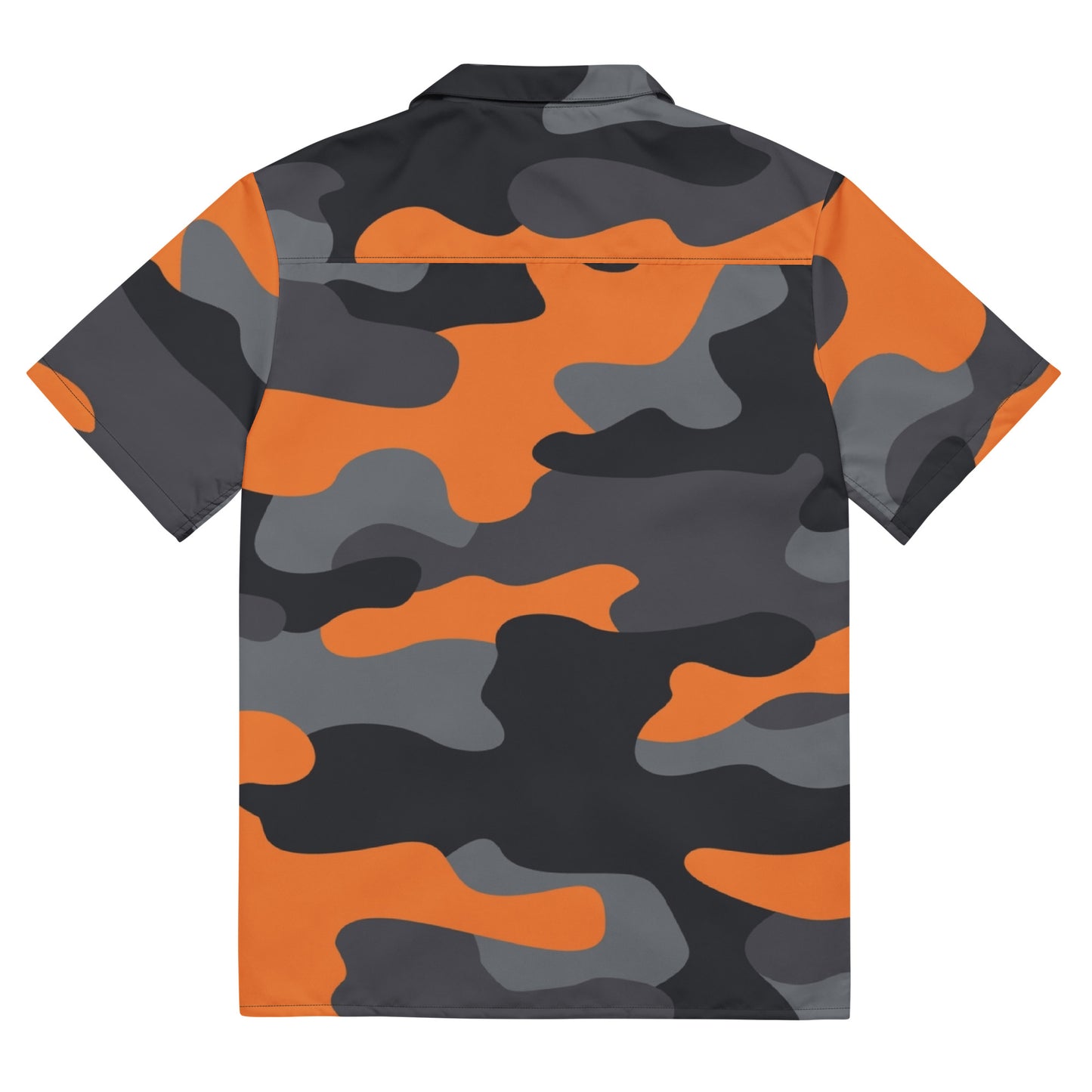 Camo Button Up Shirt | Orange, Black & Gray Camouflage