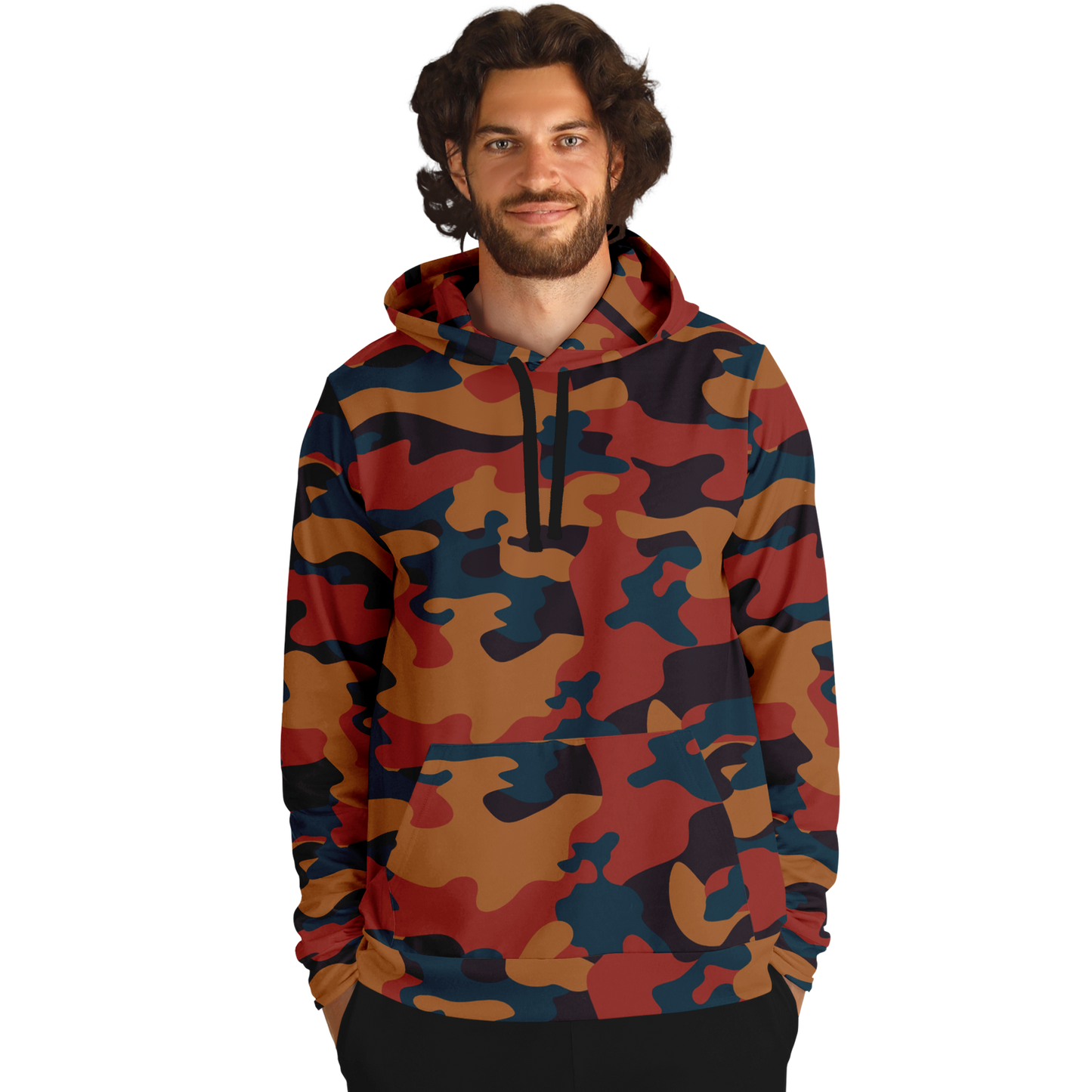 Camo Hoodie | Brown, Prussian Blue and Auburn