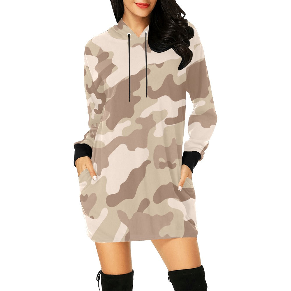 This Camo Hoodie Dress in Desert Brown Camouflage is the perfect blend of style and function. With its trendy camo print and comfortable hoodie design, you'll stay on-trend and cozy. Made with high-quality material, this dress is perfect for any occasion.