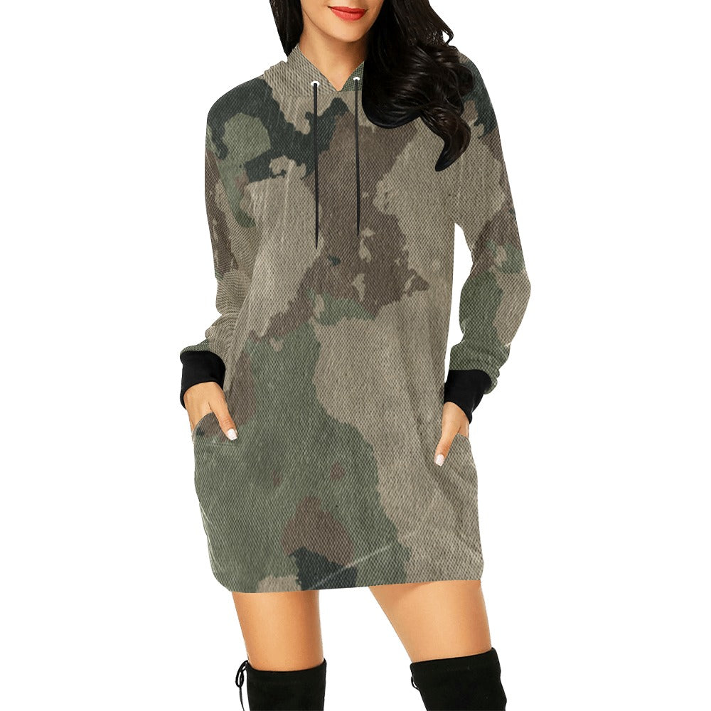 This Camo Hoodie Dress in a Dirty Brown Camouflage design is the perfect blend of style and functionality. Made with high-quality material, it provides both comfort and durability. With a versatile hood and trendy camo print, this dress is perfect for any casual occasion. Stay on-trend and comfortable with this stylish dress.
