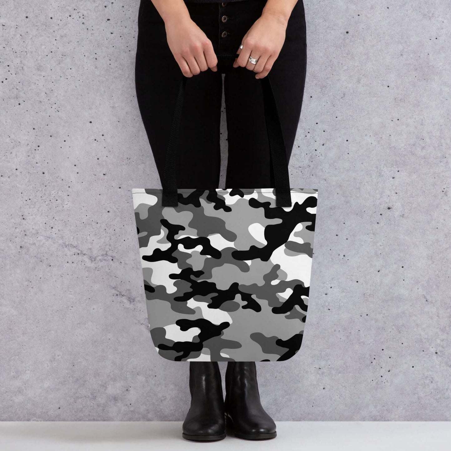 Camo Tote Bag | Black, Gray, and White Camouflage