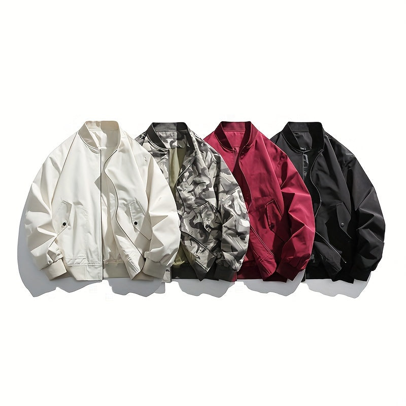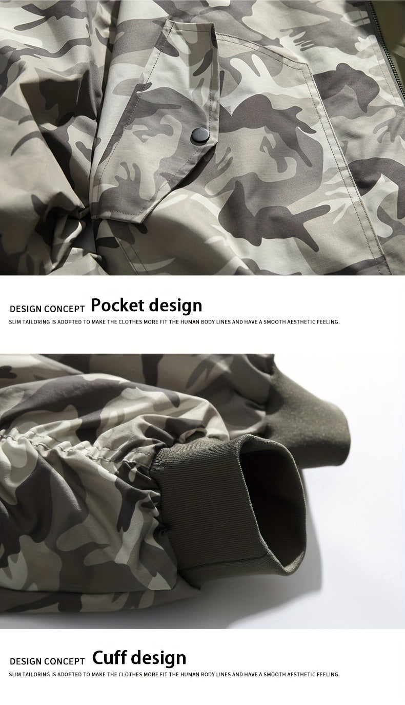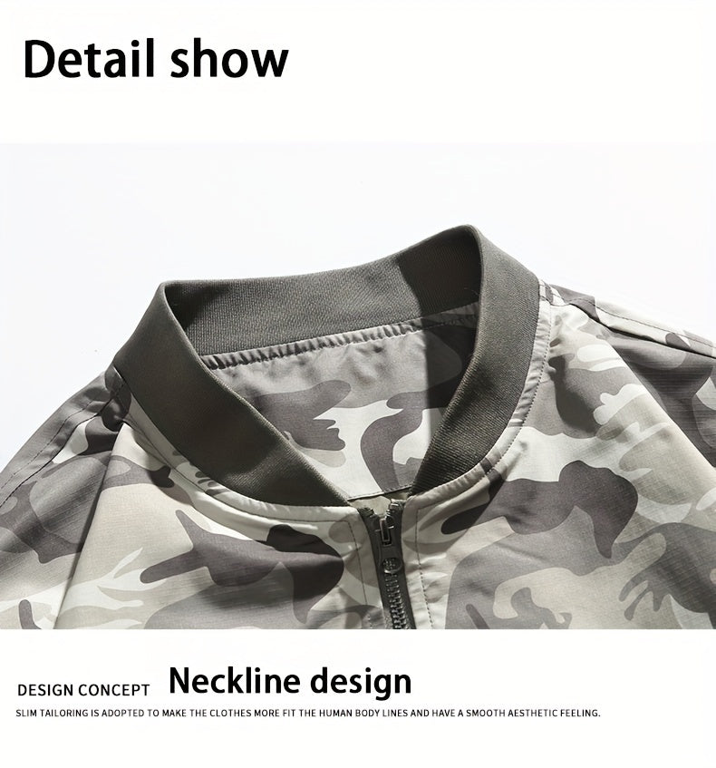 Casual Men's Camo Bomber Jacket, Polyester, for Outdoor Activities