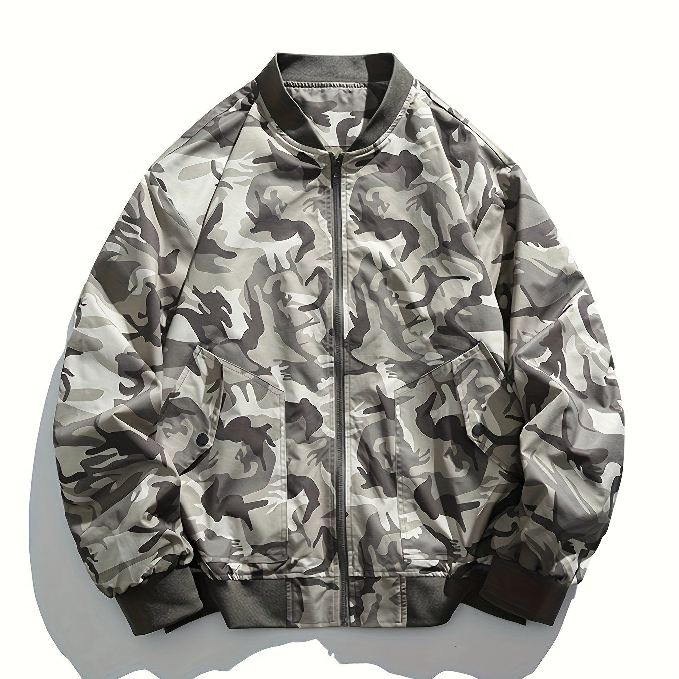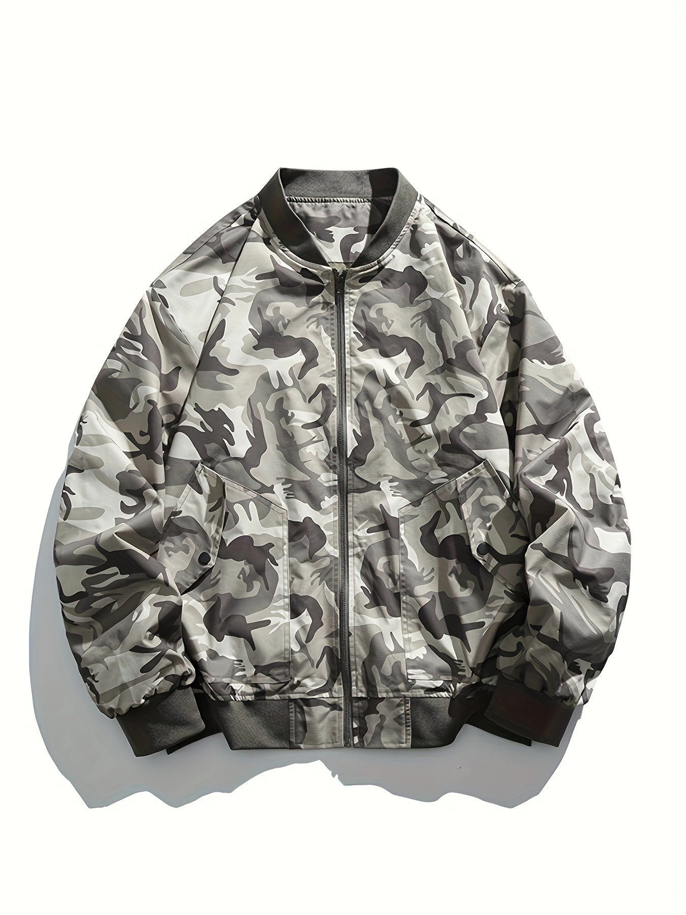 The Casual Men's Camo Bomber Jacket, made from durable polyester, is the perfect outerwear for outdoor activities. Featuring a bold camouflage print, this jacket offers a stylish, rugged look while providing functionality. The lightweight, weather-resistant polyester fabric keeps you comfortable and dry during active outings. With a full zipper closure and ribbed cuffs, it offers a secure fit, while the bomber design adds a touch of military-inspired flair. Whether you're hiking, camping, or simply enjoying a day outdoors, this camo bomber jacket provides both style and practicality. Ideal for men who want comfort, durability, and versatility in their outdoor wardrobe.