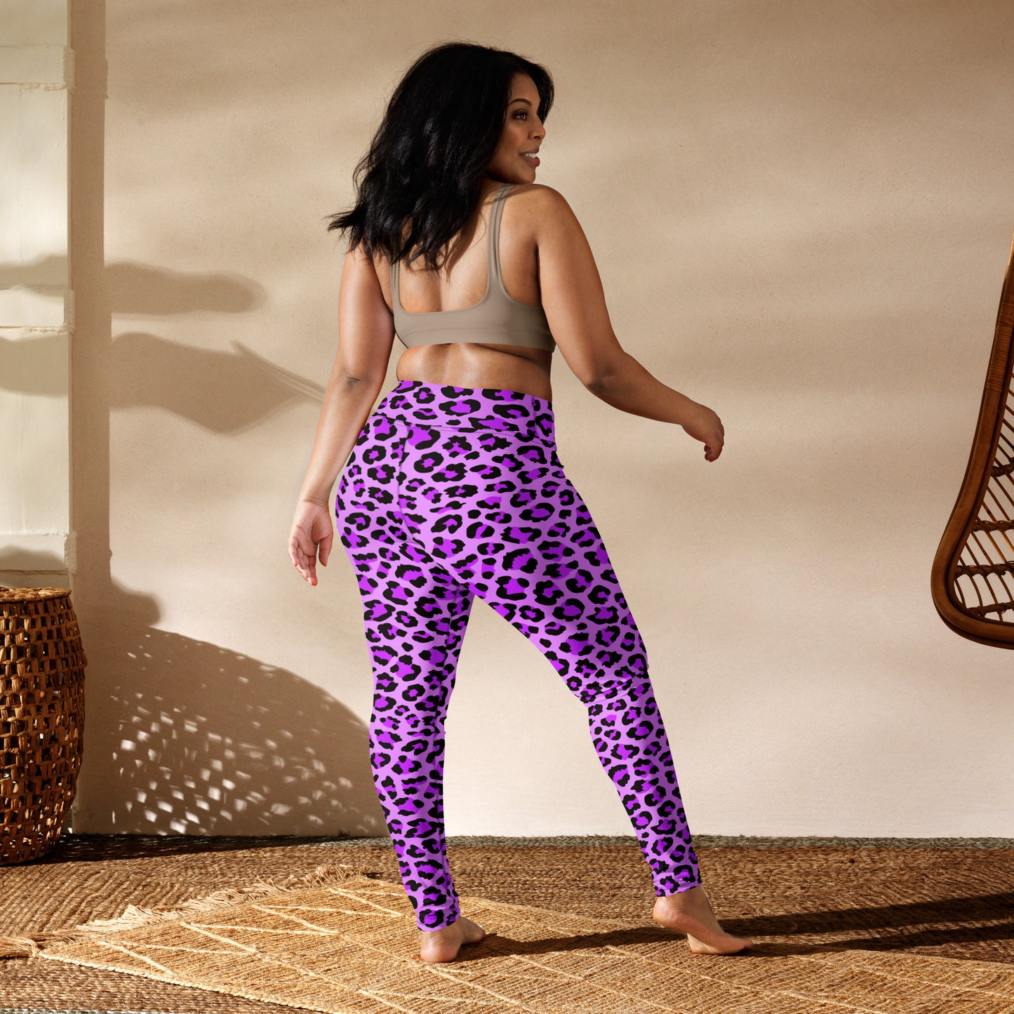 These leopard yoga pants come in beautiful shades of purple, blue, and black, making them a stylish and versatile choice for any yoga enthusiast. With their comfortable fit and eye-catching design, you'll feel confident and empowered during your practice. Made with high-quality materials, these pants offer both style and functionality.