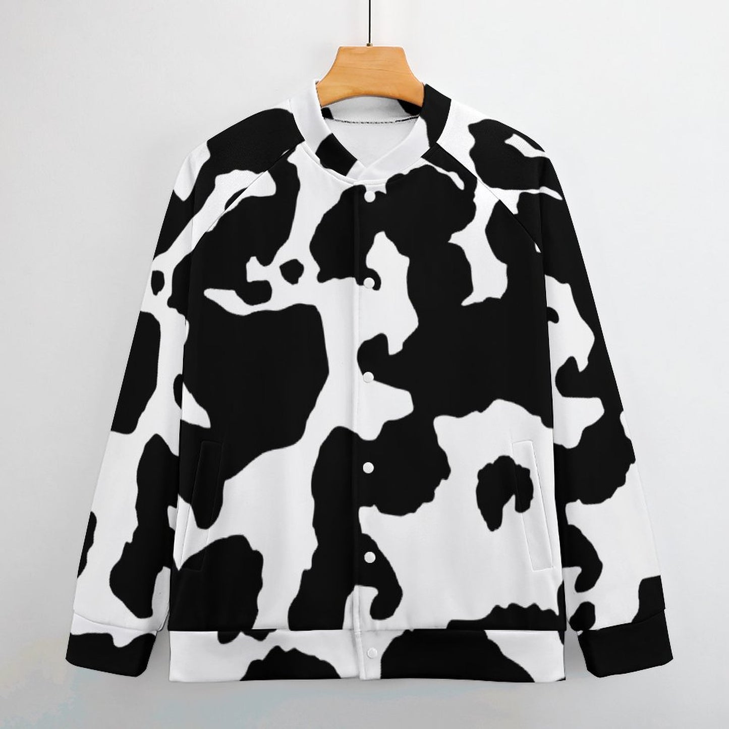 Stay camouflaged and stylish with our Men's Camo Jacket in Black & White Cow Camouflage. Made for any outdoor adventure, our jacket features a unique black and white cow print for a bold, rugged look. With durable material and a comfortable fit, you'll be ready for any terrain.