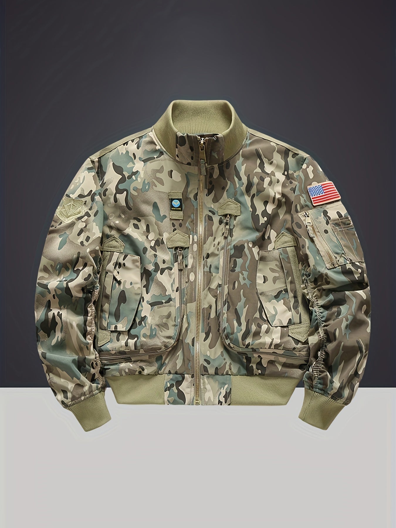Stay stylish and comfortable with our Men's Casual Stand Collar Camouflage Print Jacket. Made with 100% polyester and featuring a baseball collar and zipper closure, this short length jacket is perfect for casual occasions. Machine washable for easy maintenance. Look effortlessly cool with this classic style.