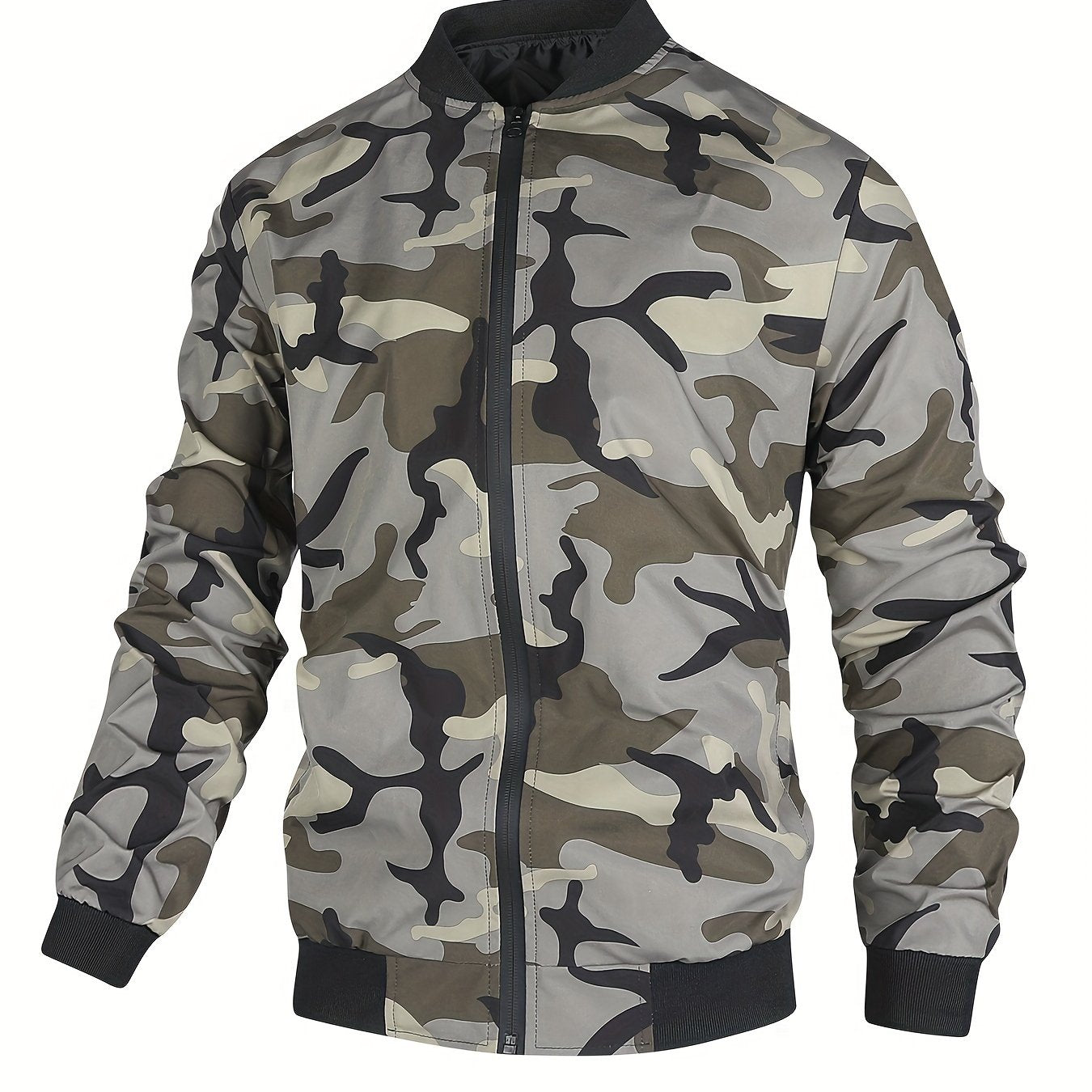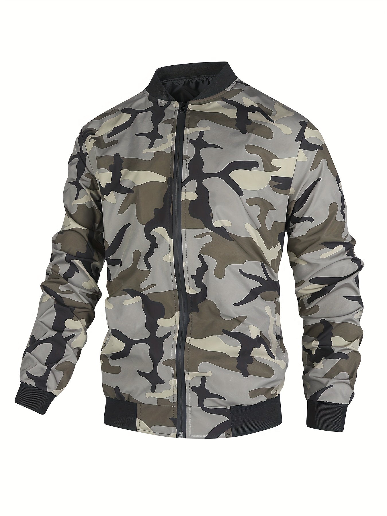 Stay stylish and comfortable in our Men's Lightweight Camouflage Bomber Jacket. Made with 100% polyester material and featuring a full zipper closure, stand collar, and convenient pockets, this jacket is perfect for spring and fall seasons. It is also easy to maintain with machine wash or professional dry cleaning. Its versatile style makes it perfect for casual wear.
