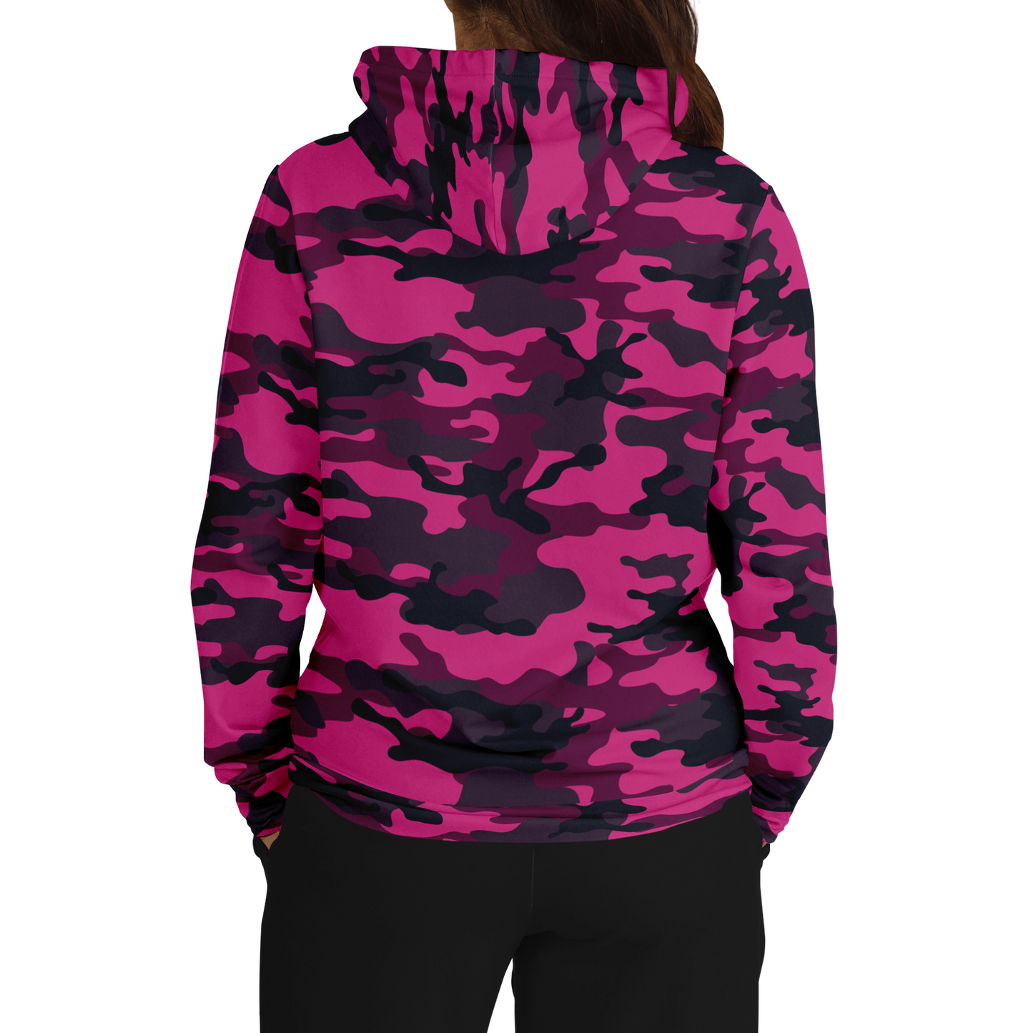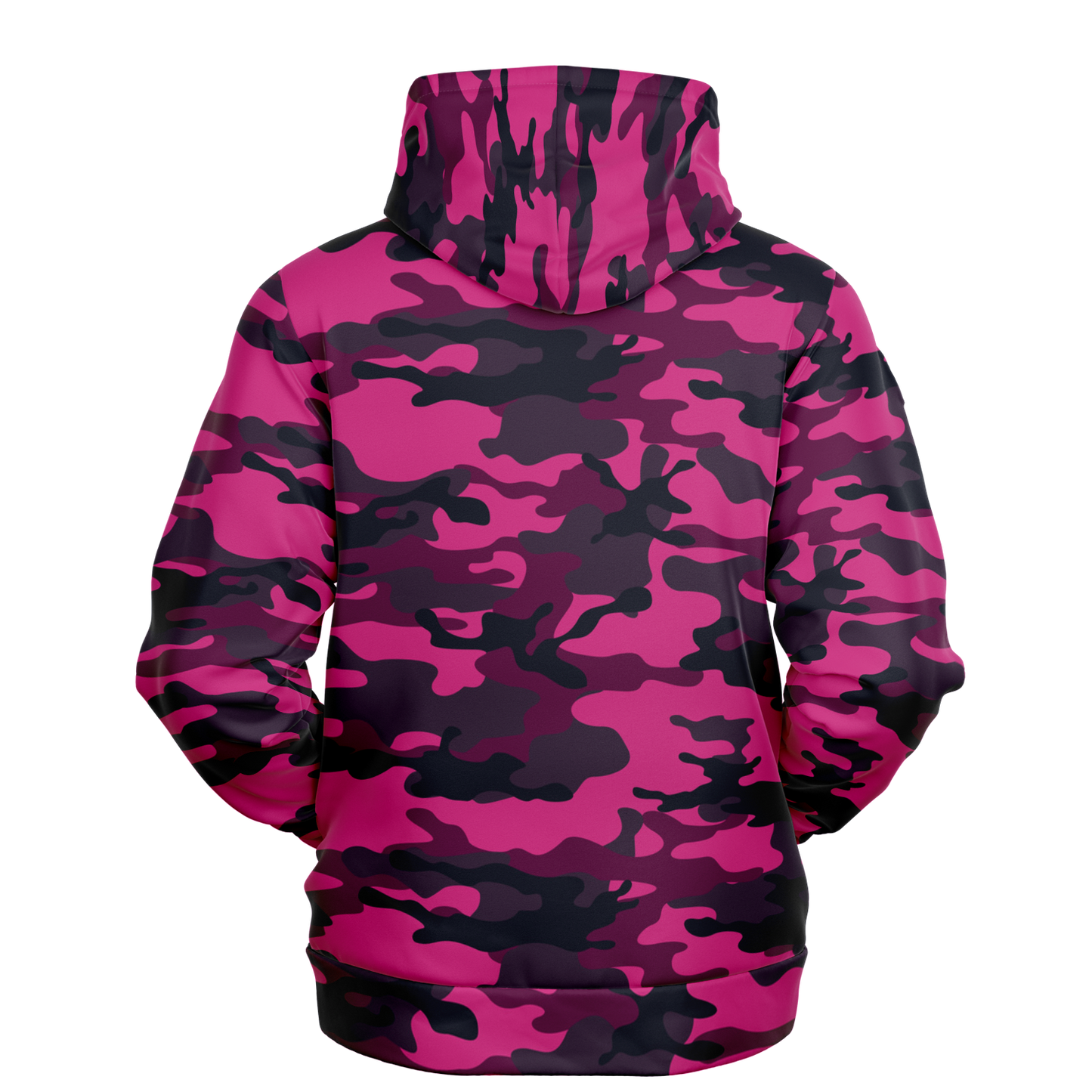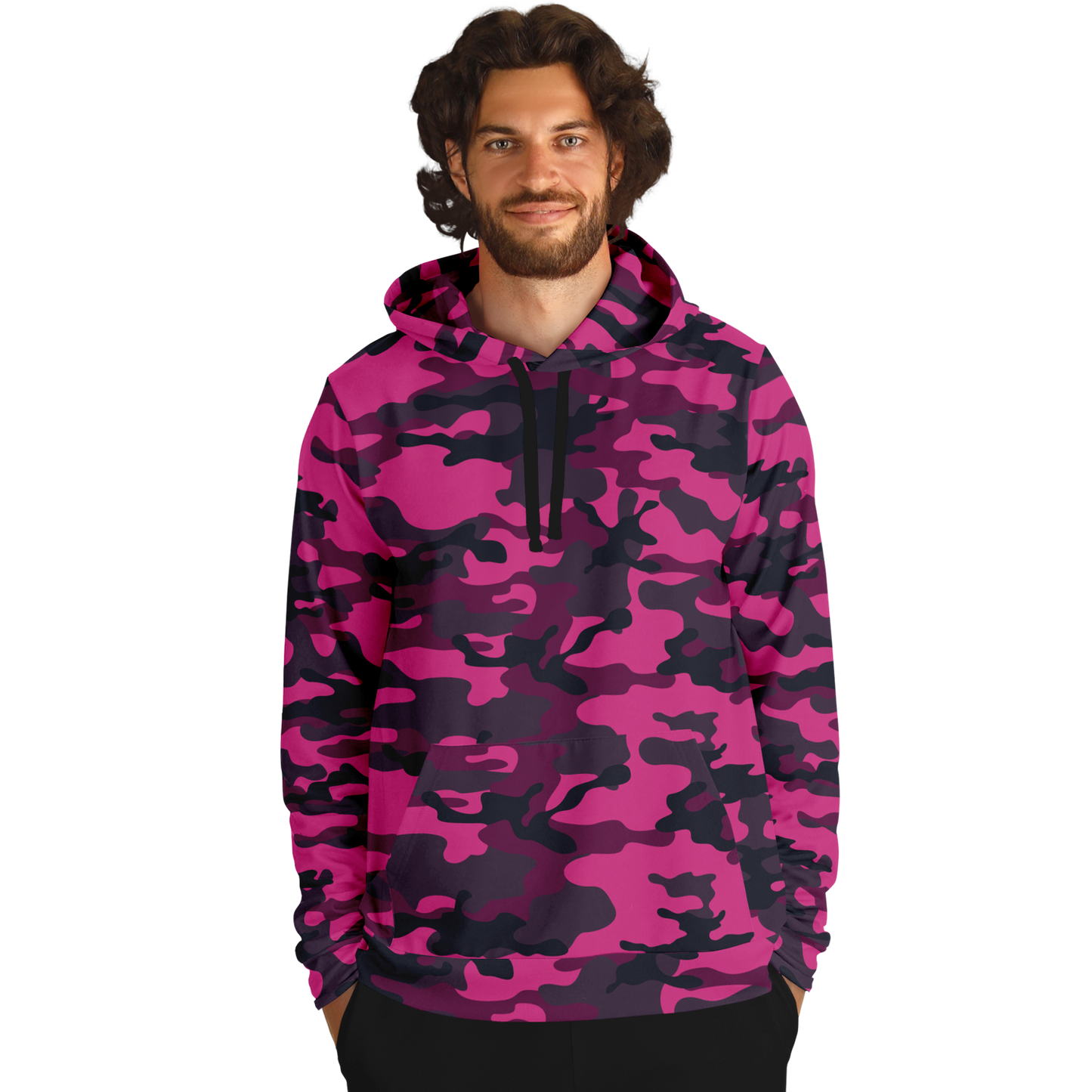 This Pink Camo Hoodie features a unique blend of Onyx and Deep Blue camouflage, perfect for making a statement while staying comfortable. Made with high-quality materials, this hoodie is both stylish and durable. Perfect for outdoor activities or everyday wear.