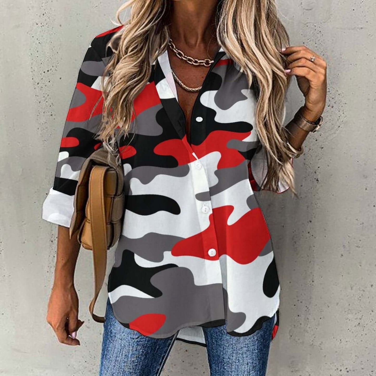 Women's Button-Up Camo Shirt | Red, Black & White