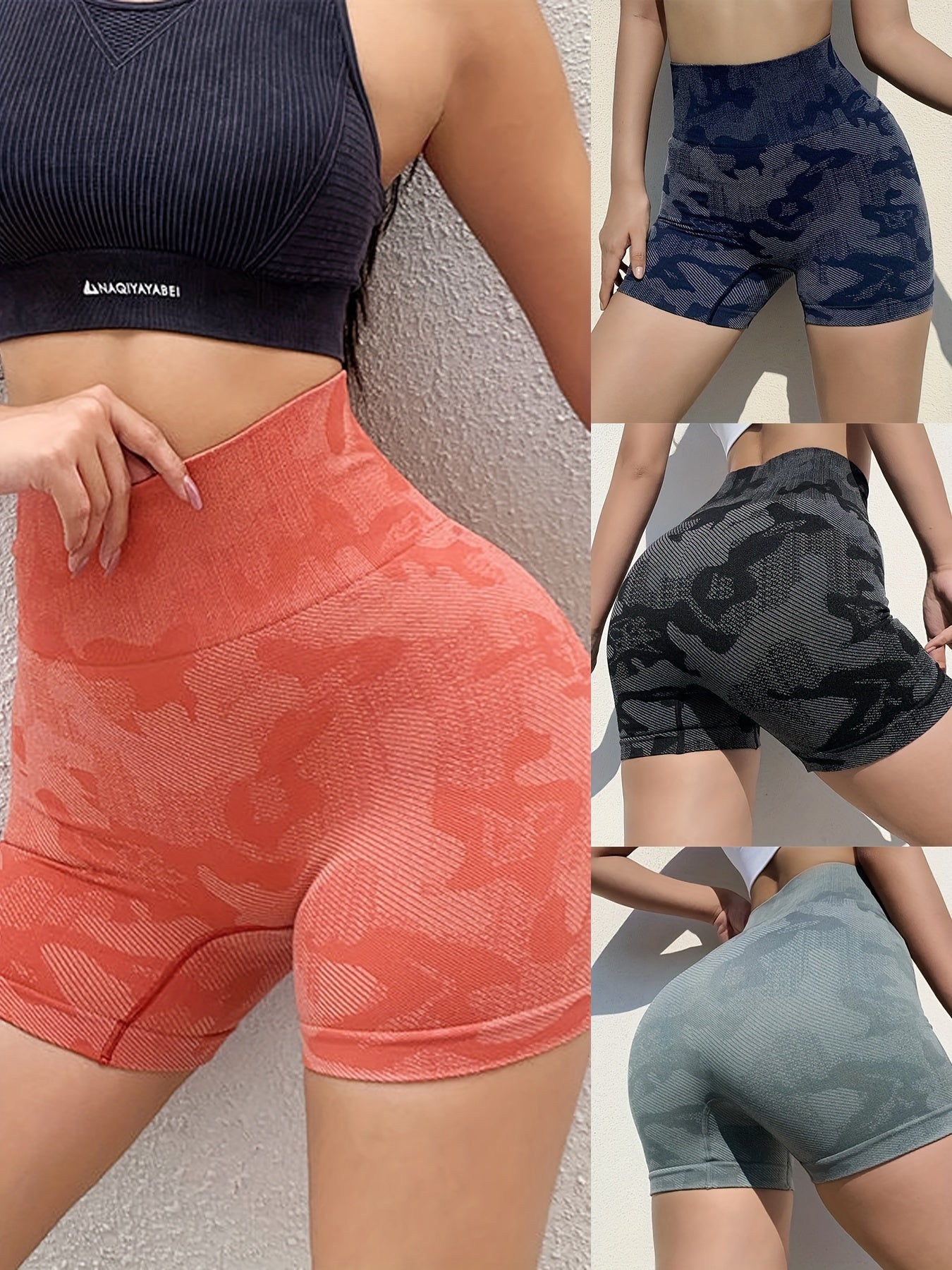 Women's Camo Yoga Shorts: High-Waist, Medium Support, 4pcs
