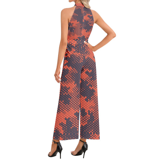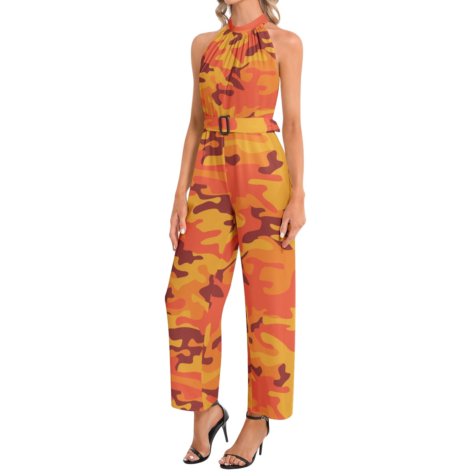 Camo Jumpsuit | Belted Halter Neck | Orange and Red