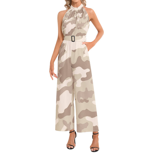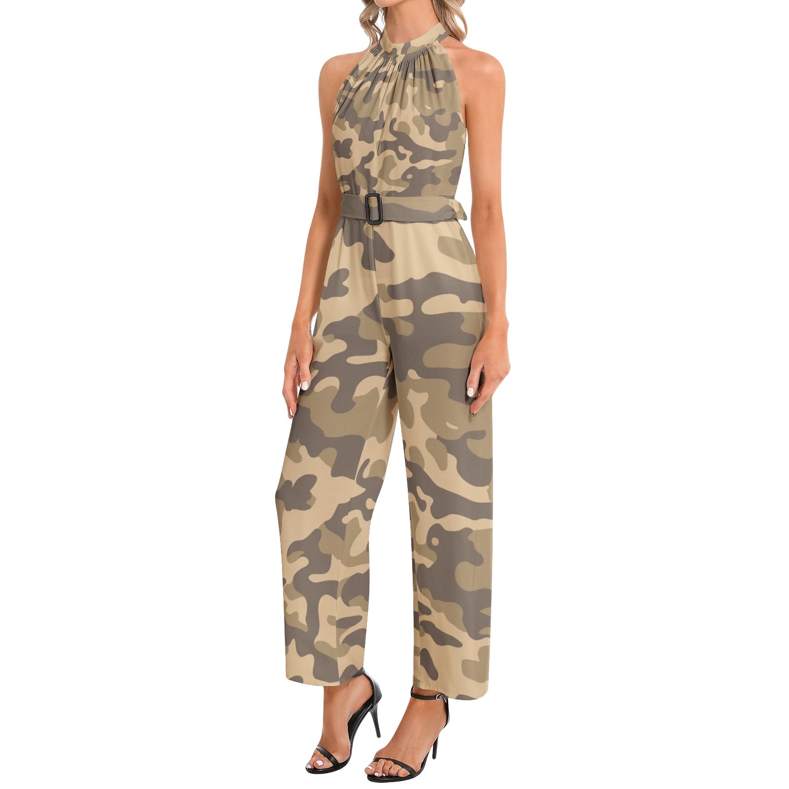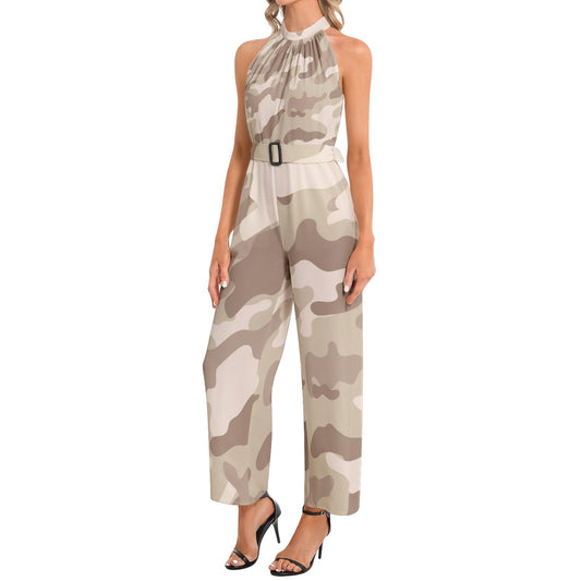 Camo Jumpsuit | Belted Halter Neck | Desert Brown