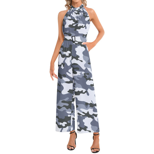 Camo Jumpsuit | Belted Halter Neck | Light Blue