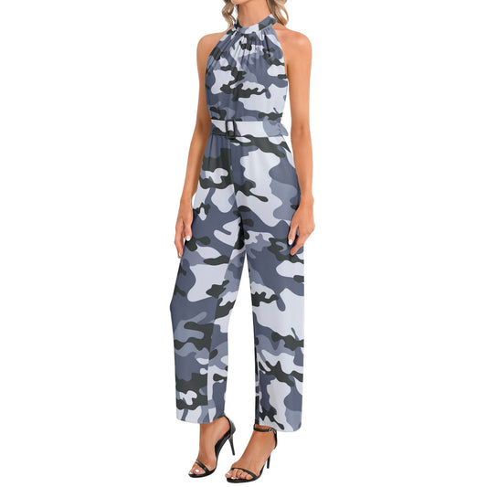 Camo Jumpsuit | Belted Halter Neck | Digital Gray