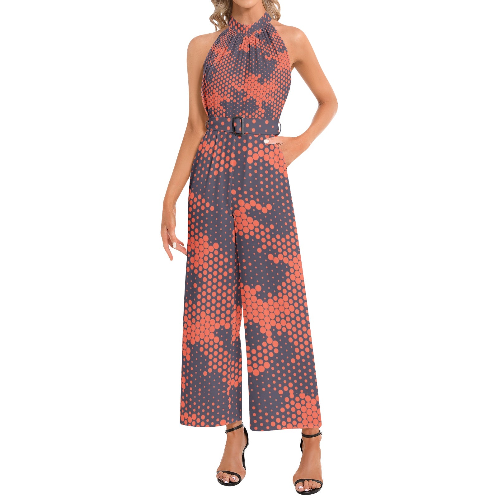 Camo Jumpsuit | Belted Halter Neck | Orange and Blue Digital