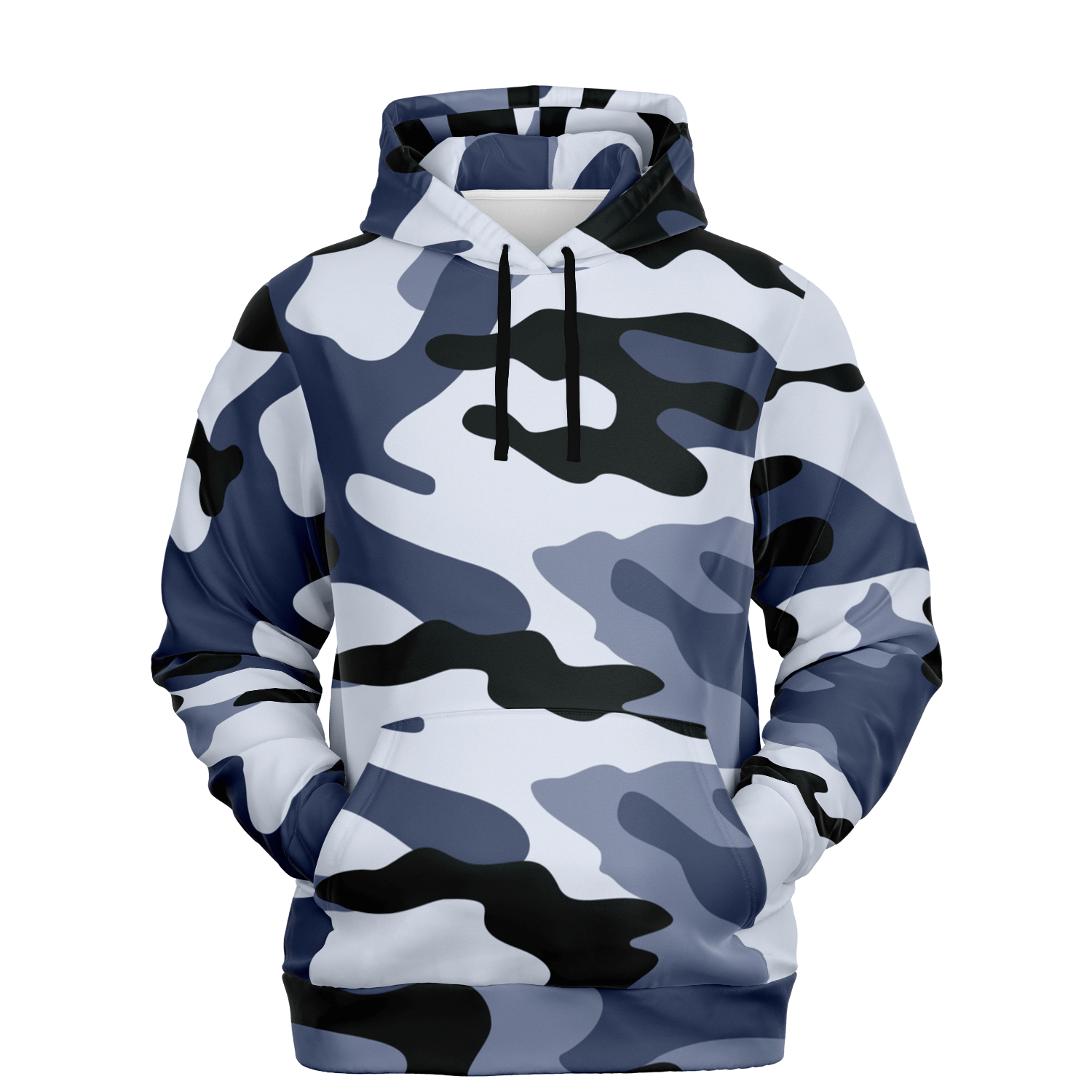 Explore our collection of Blue Camo Hoodies, available in a variety of striking color combinations and unique camouflage patterns. Designed for both men and women, each hoodie showcases a blue-based camouflage design that stands out in bold style. Crafted from a premium blend of polyester and spandex, these hoodies offer exceptional comfort, durability, and stretch. The high-definition (HD) print ensures vibrant and eye-catching designs that make a statement wherever you go. Shop now!