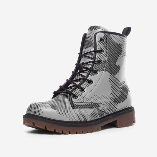 Step out in style with our versatile Camo Boots, available in a range of eye-catching camouflage colors and patterns. Each pair features a faux leather construction, combining durability with a sleek look. Designed for casual wear, these lightweight boots offer comfort and practicality with every step. Shop now!