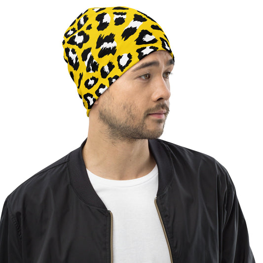 Leopard Print Beanie in Yellow and Black | Camo Colors