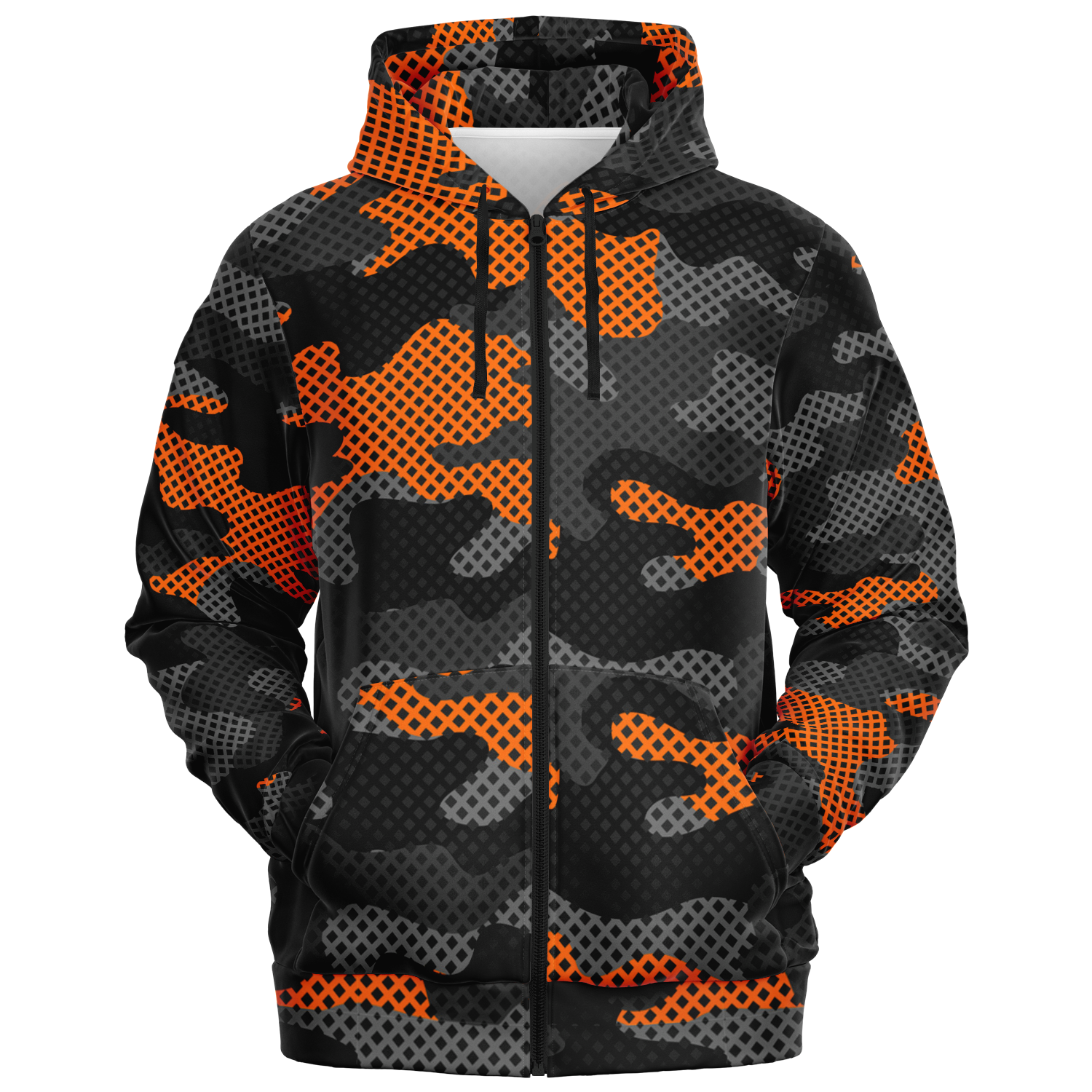 Zip-Up Hoodie | Orange & Black Pixel Camouflage style