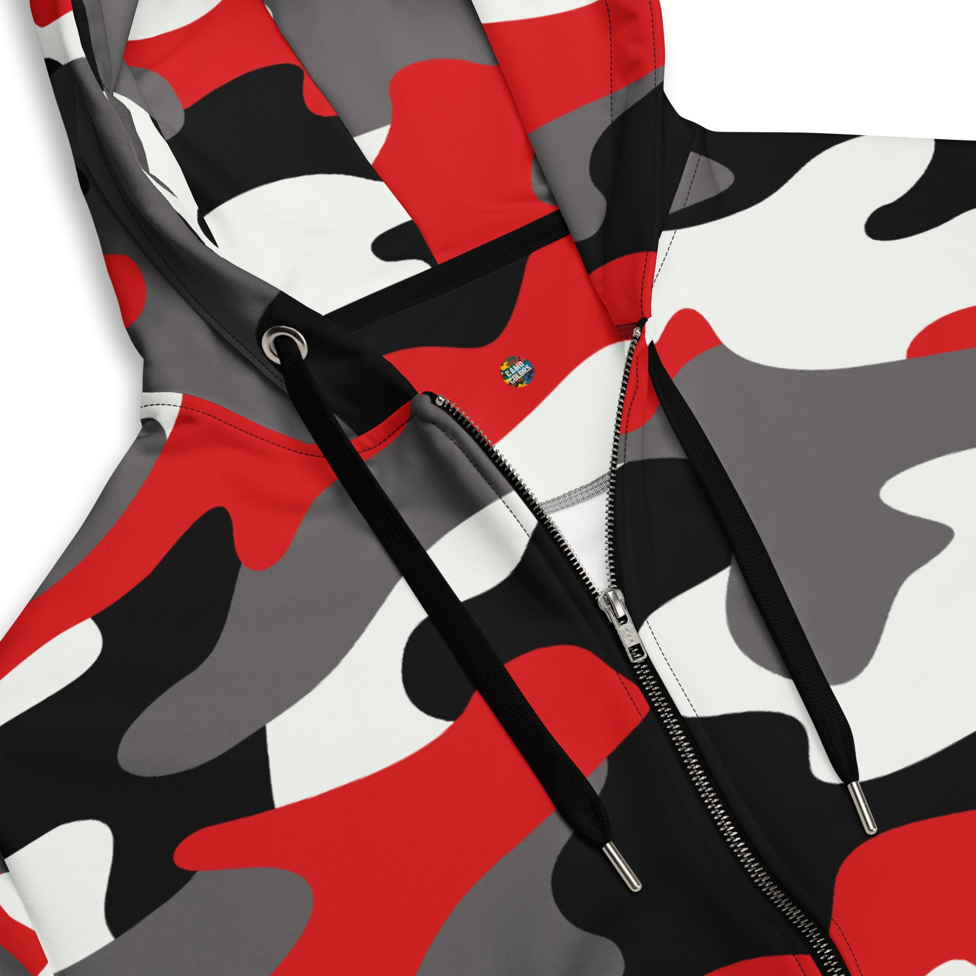 Camo Zip Hoodie – Red & Black Warrior Camo