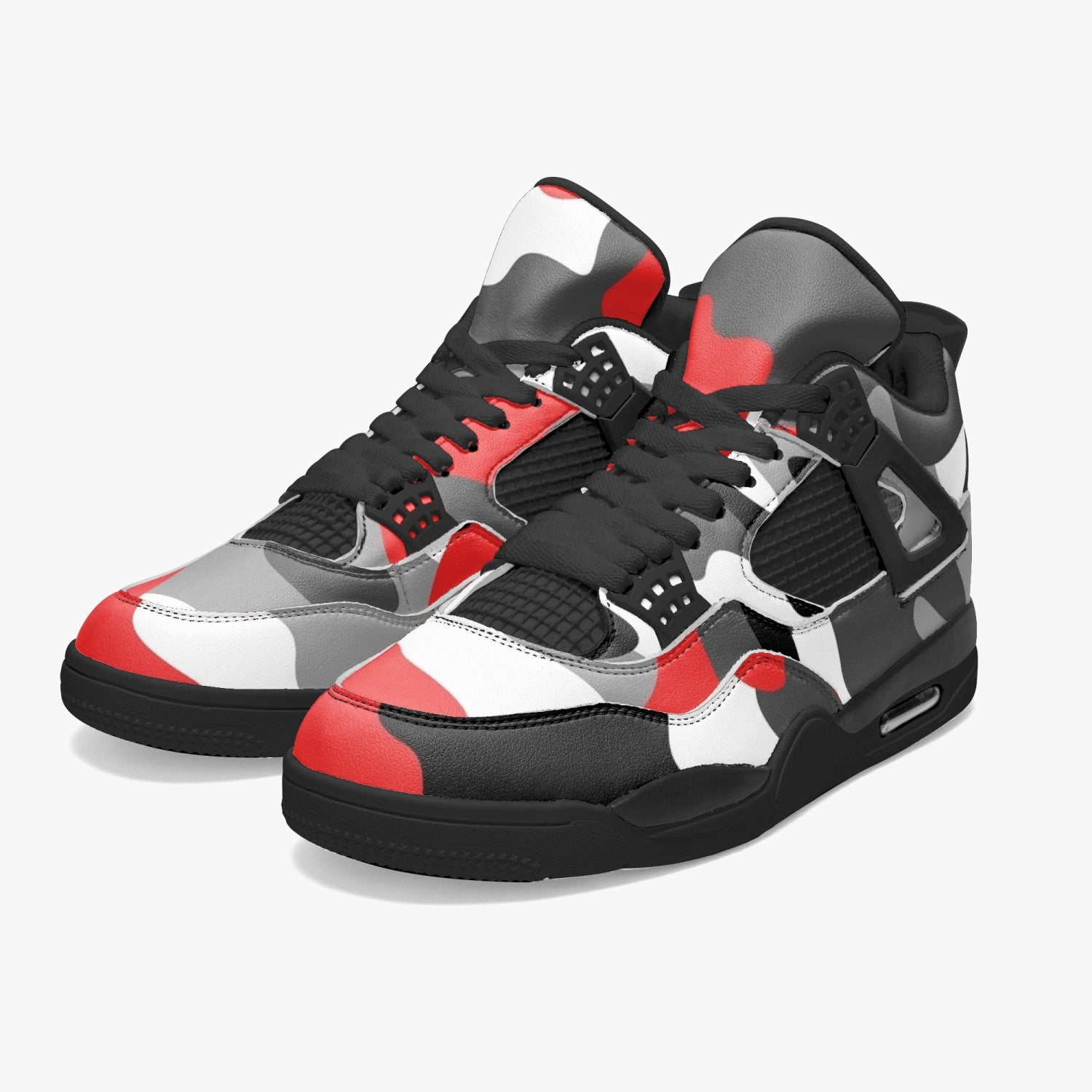 Camo Sneakers AJ4 Style | Red, Gray, Black & White