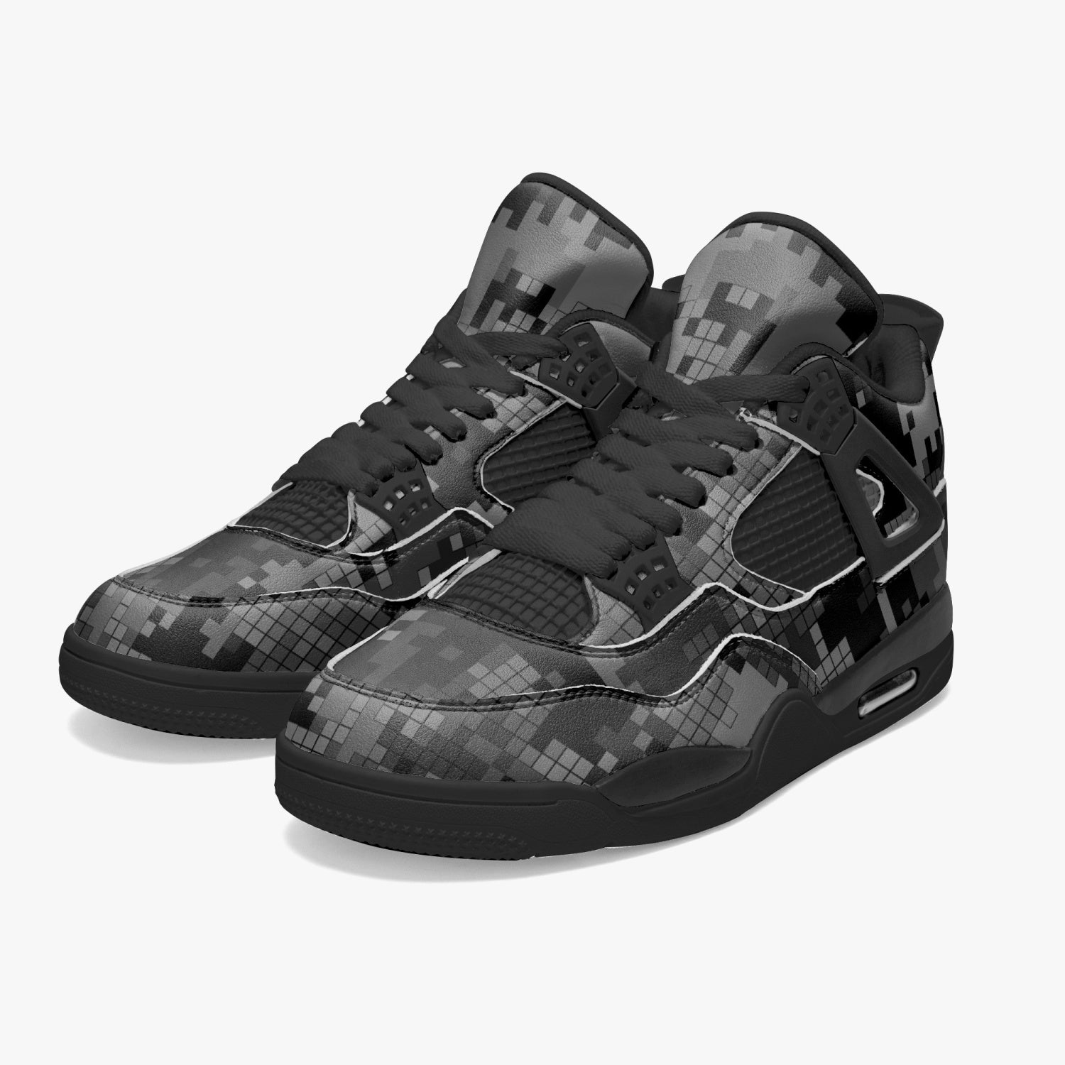 Gray Camo Sneakers AJ4 Style | Digital Monochrome | Black Sole