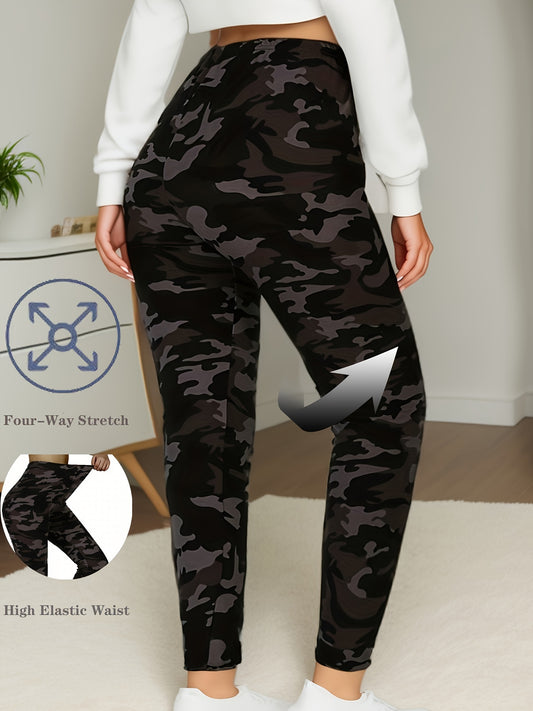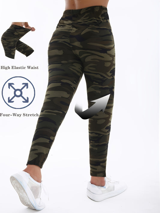 Camo Print High Waist Leggings, Casual Skinny Stretchy Leggings, Women's Clothing