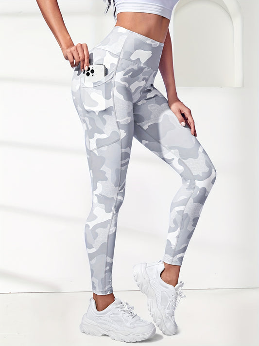 Women's Camouflage High-Waisted Yoga Pants with Pocket