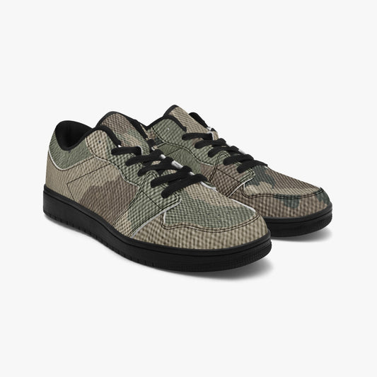 Camo Sneakers | Khaki Low-Top Leather Camouflage Shoes
