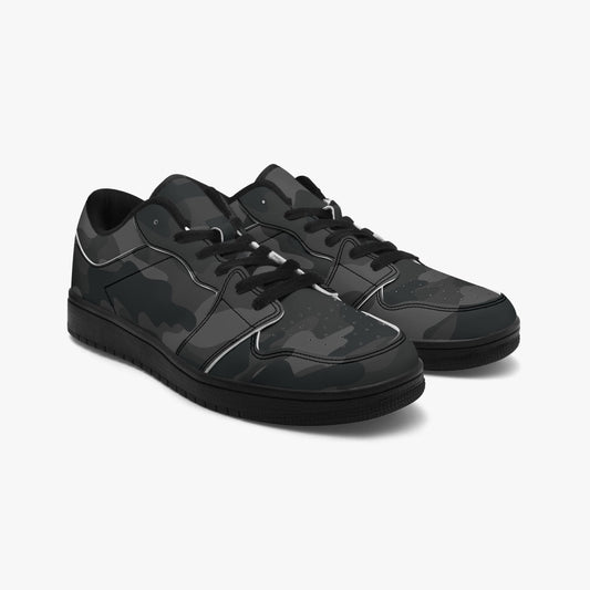 Camo Sneakers | Black Low-Top Leather Camouflage Shoes