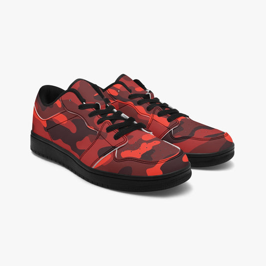 Camo Sneakers | Red Black Low-Top Leather Camouflage Shoes