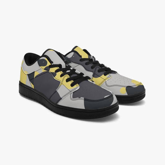 Camo Sneakers | Black Yellow Low-Top Leather Camouflage Shoes
