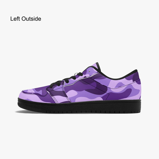 Camo Sneakers | Purple Blue Low-Top Leather Camouflage Shoes