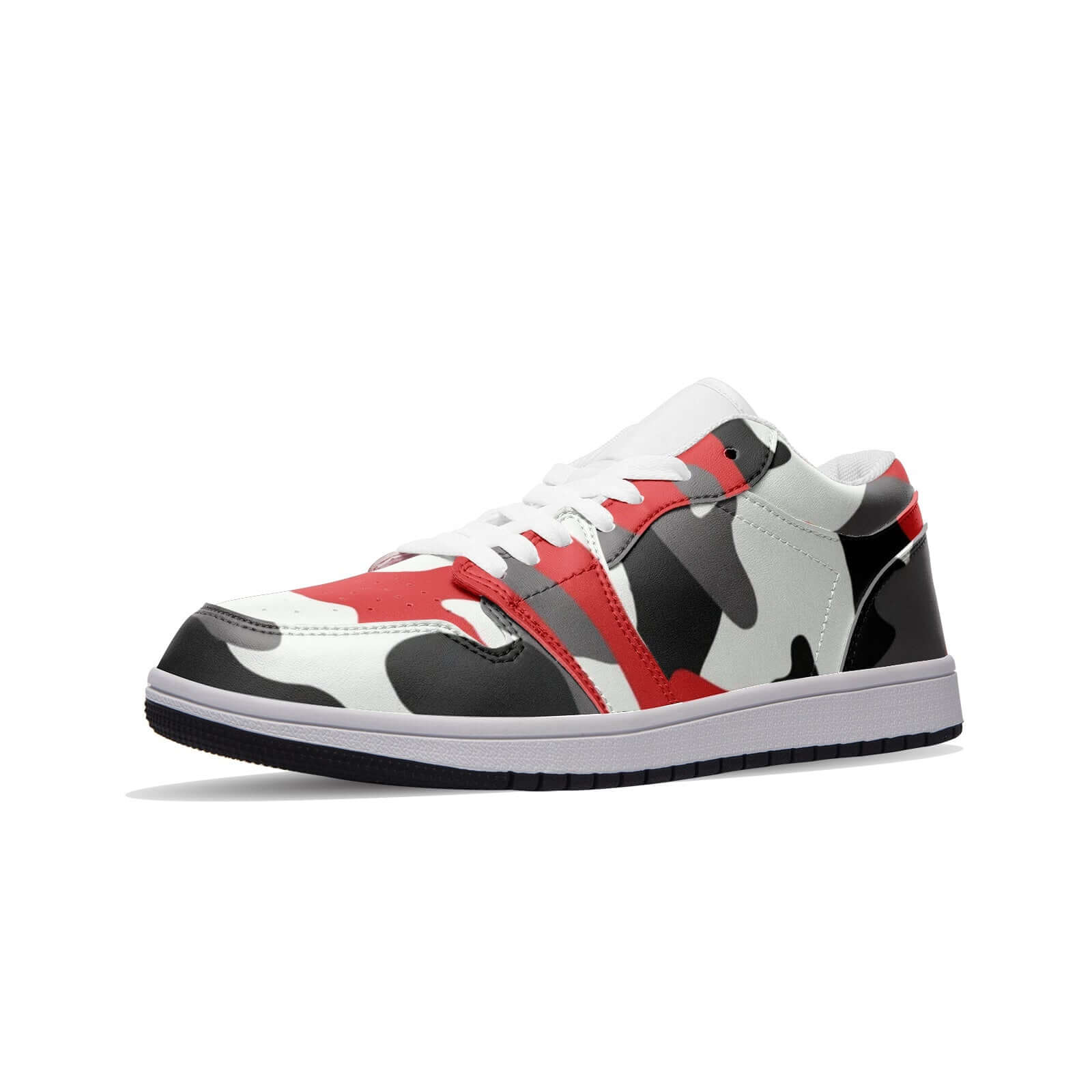 Camo Low Top Leather Sneakers | Red, Black, & White