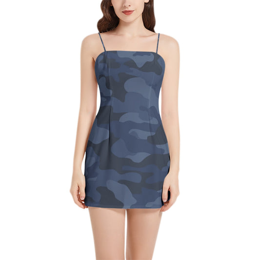 Camo Mini Dress | Spaghetti Strap | Deep Blue