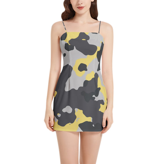 Camo Mini Dress | Spaghetti Strap | Yellow, Black, and Gray