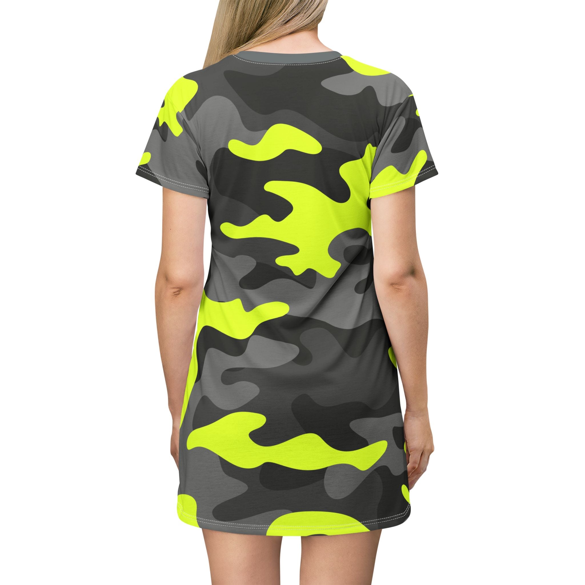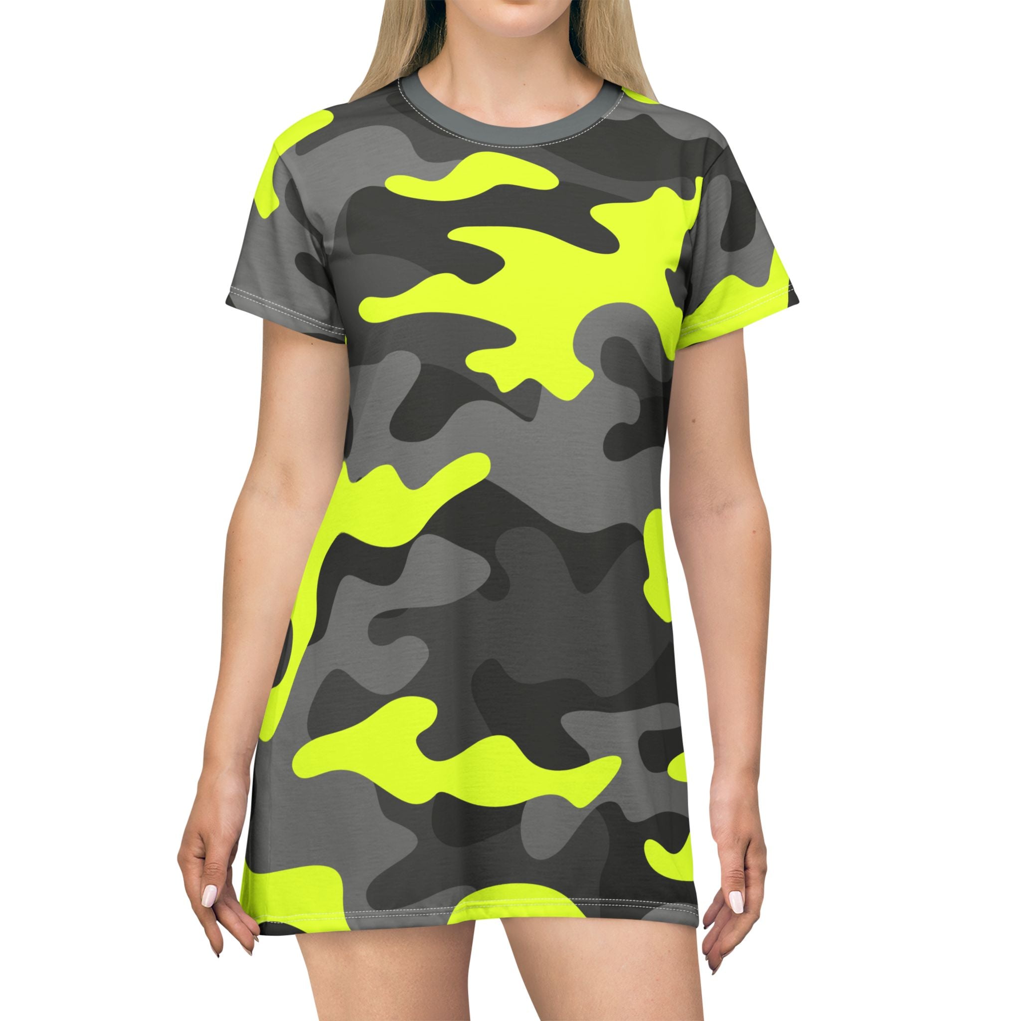 Camo T-Shirt Dress | Yellow, Black, and Silver Camouflage