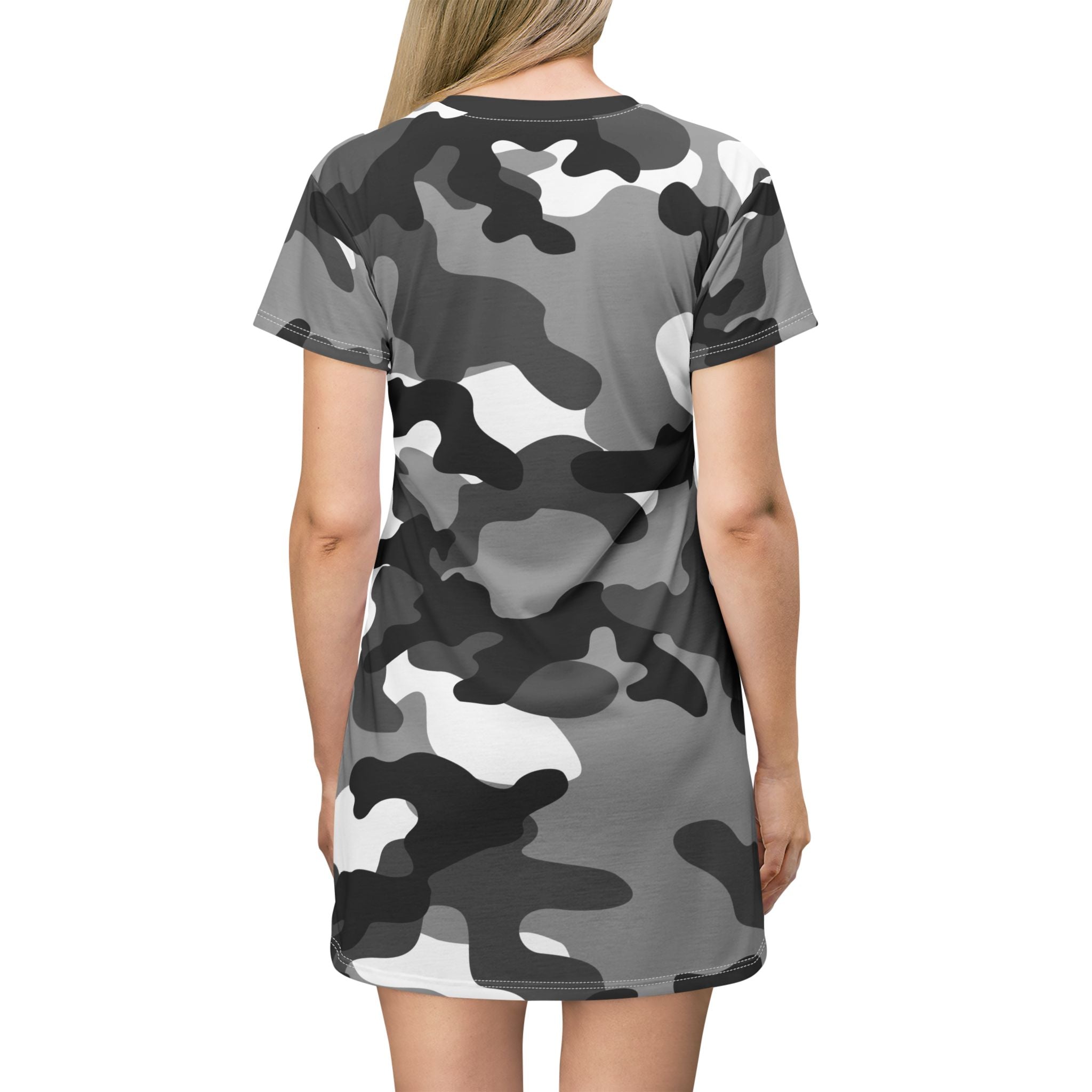 Camo T-Shirt Dress | Gray, Black, and White Camouflage
