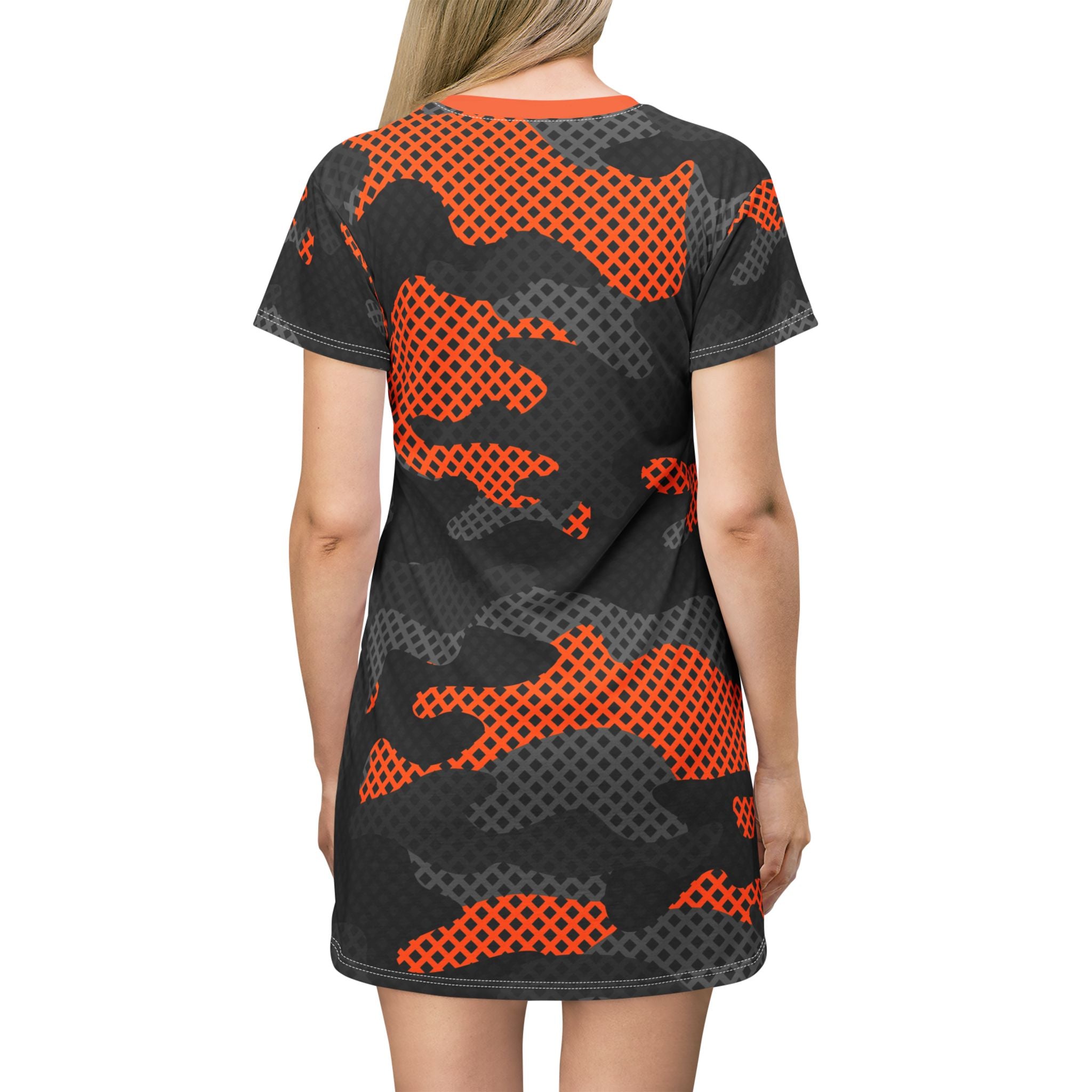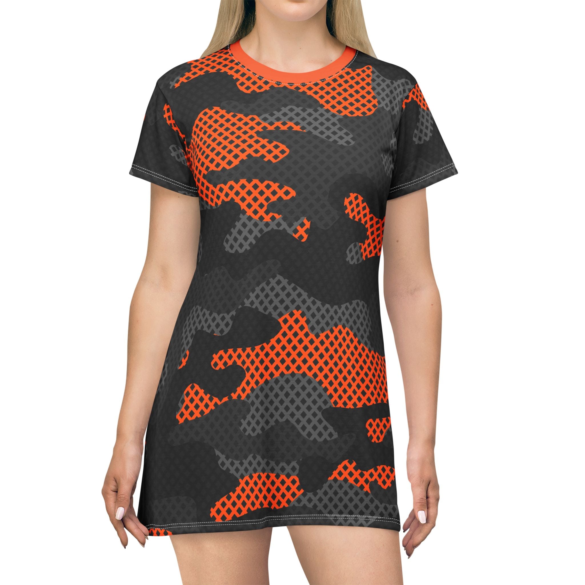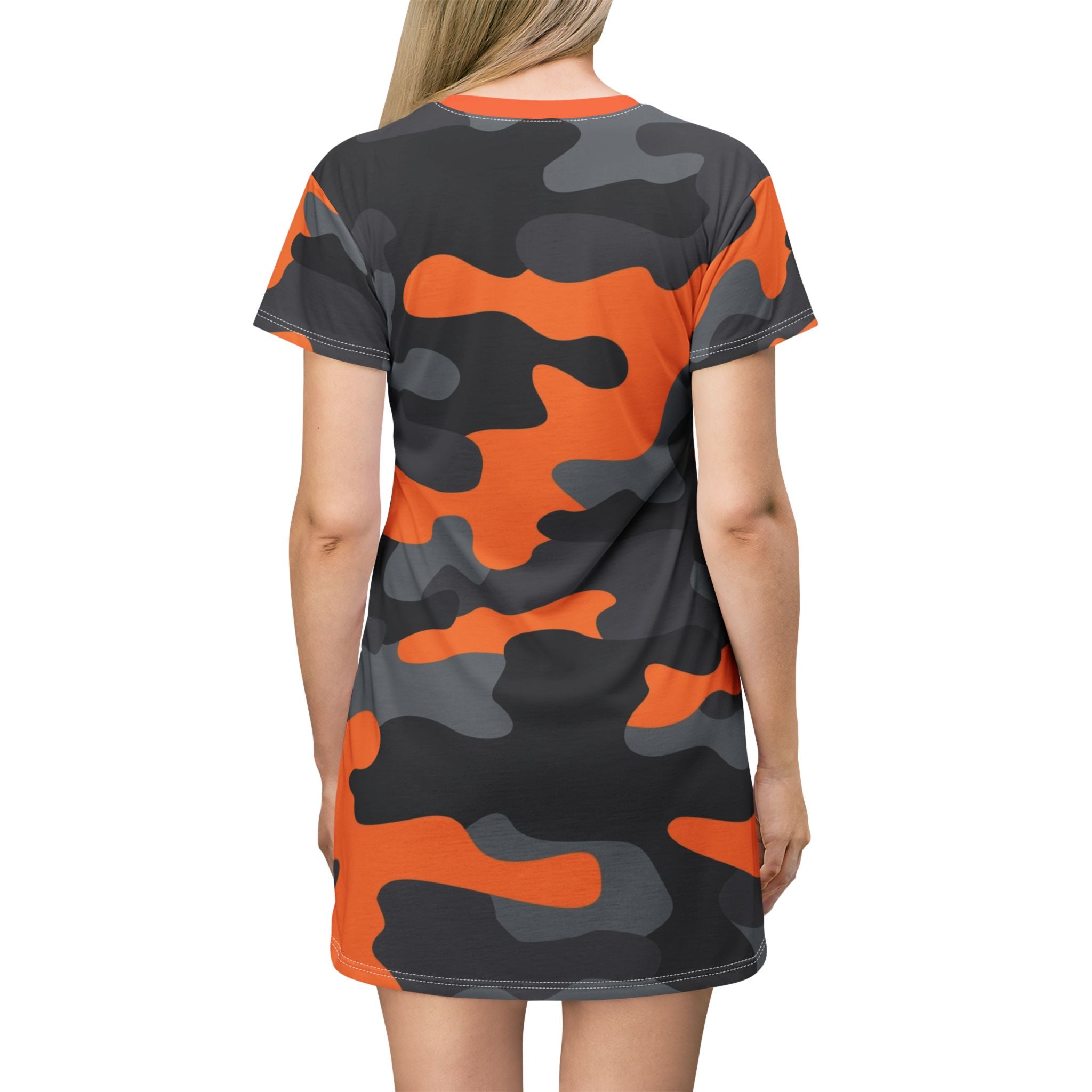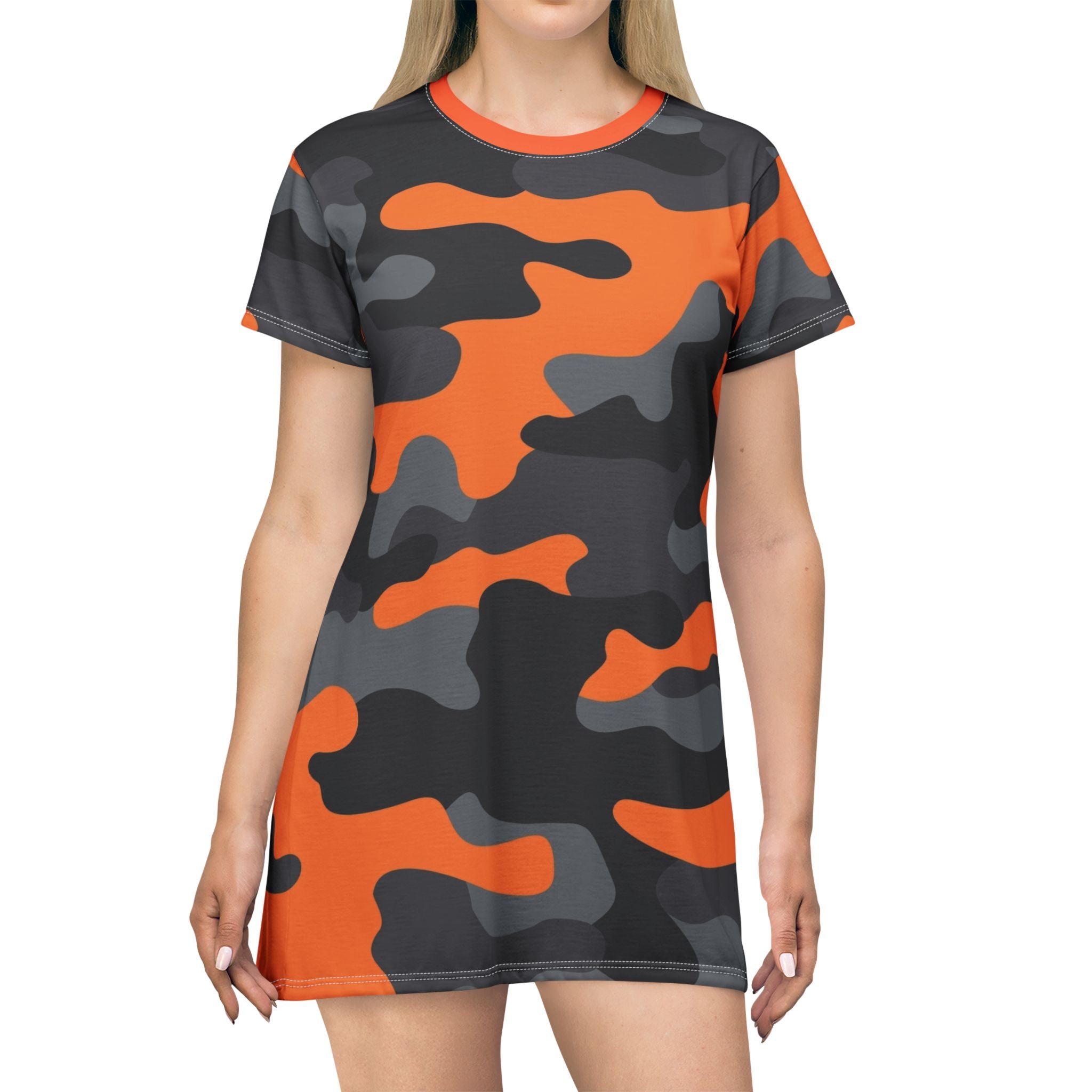 Camo T-Shirt Dress | Orange, Black, and Gray Camouflage