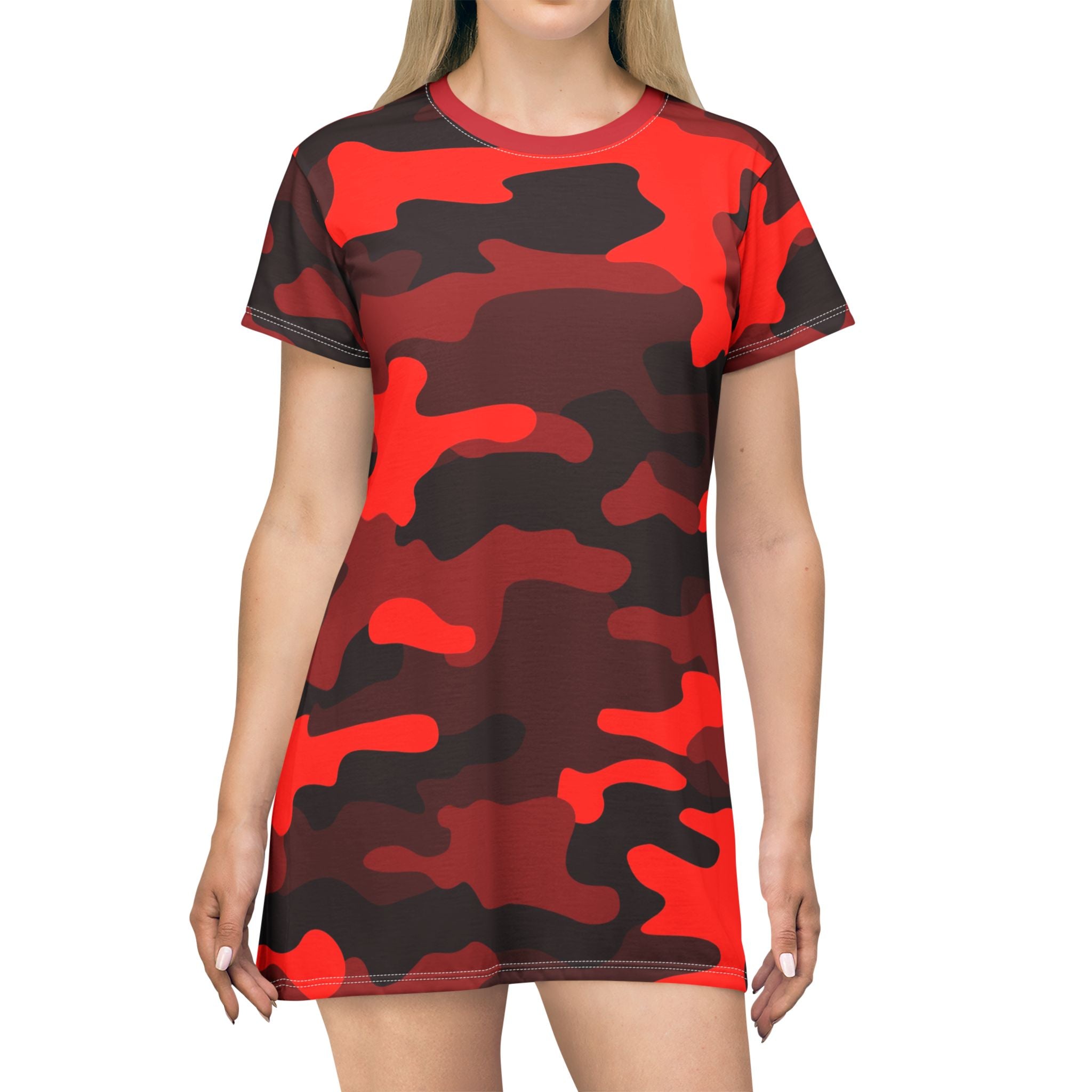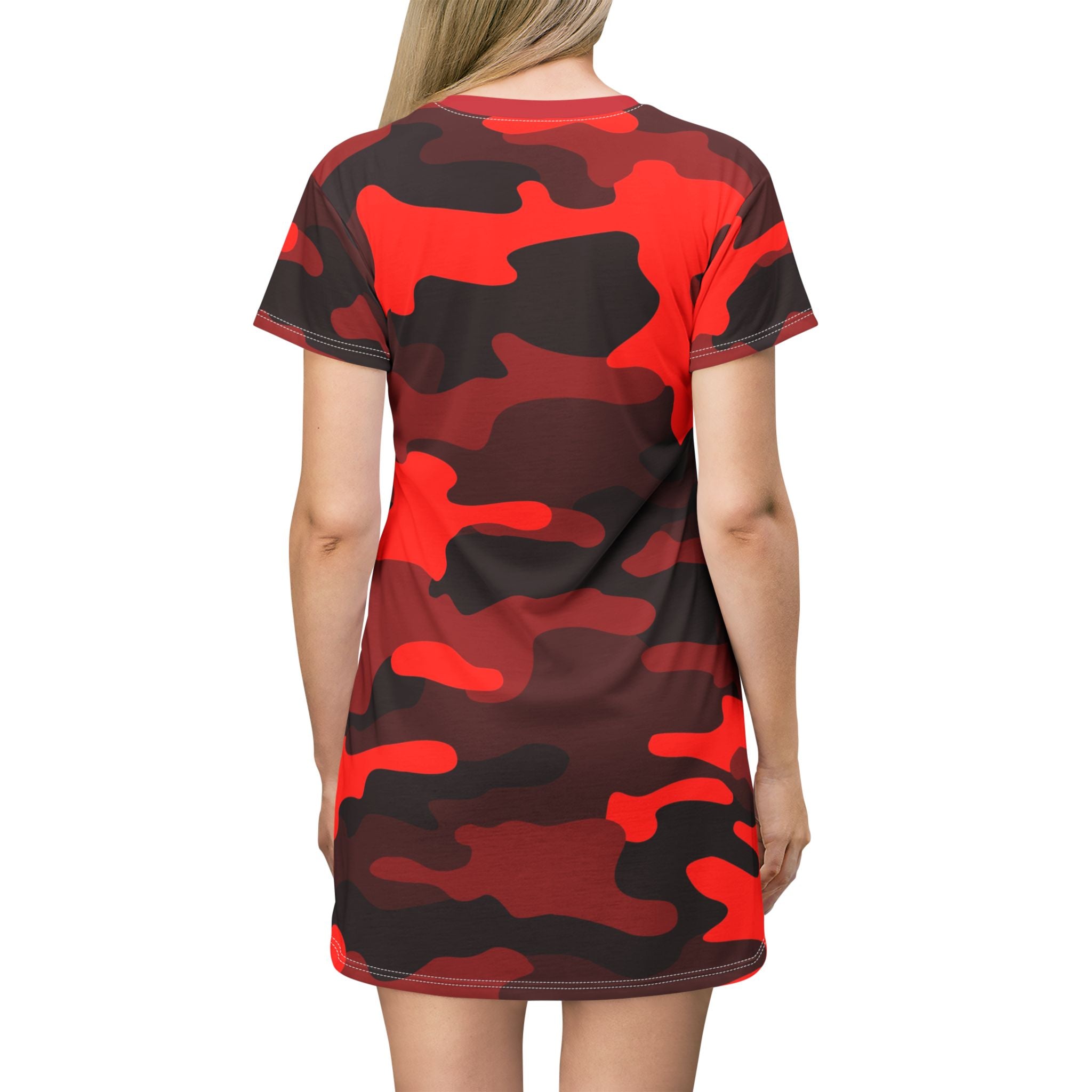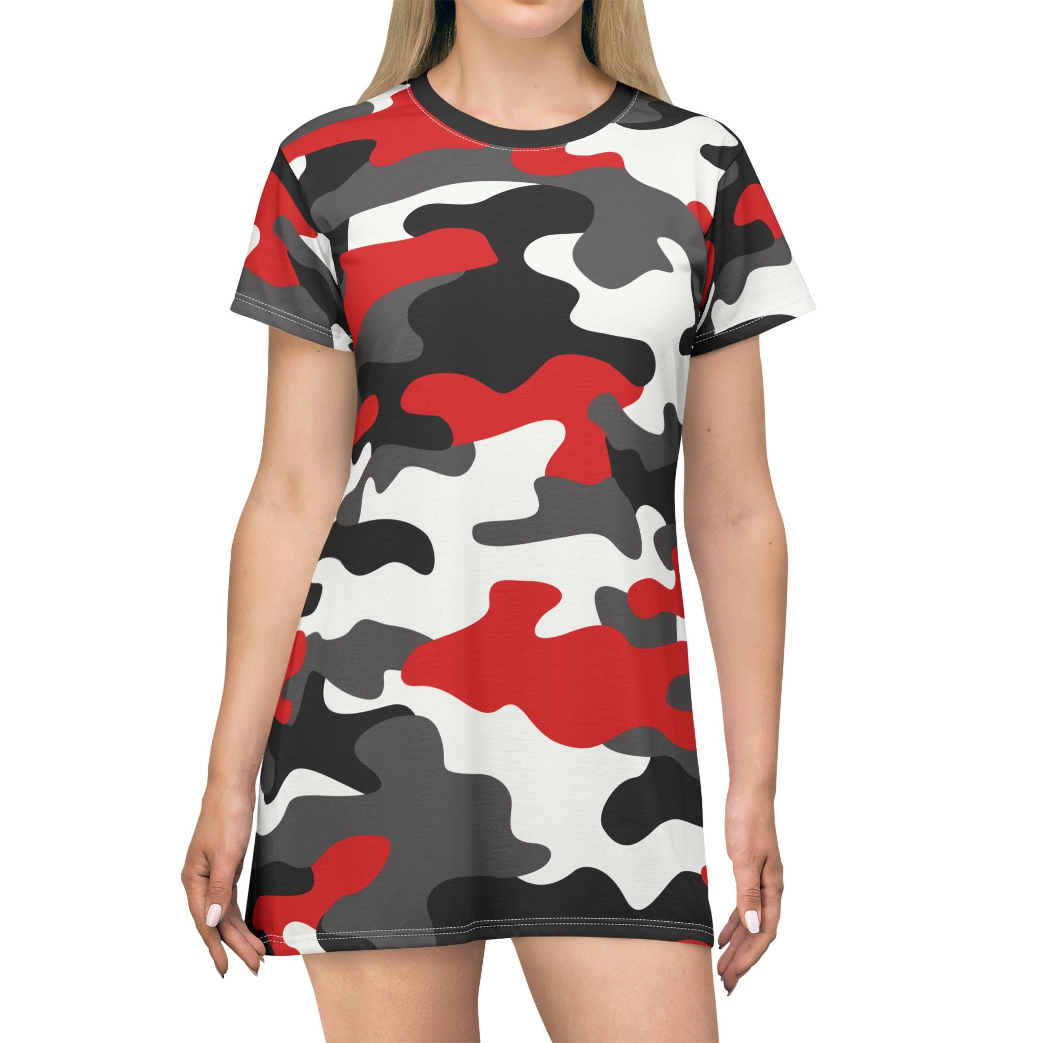 Camo T-Shirt Dress | Red, Black, and White Camouflage