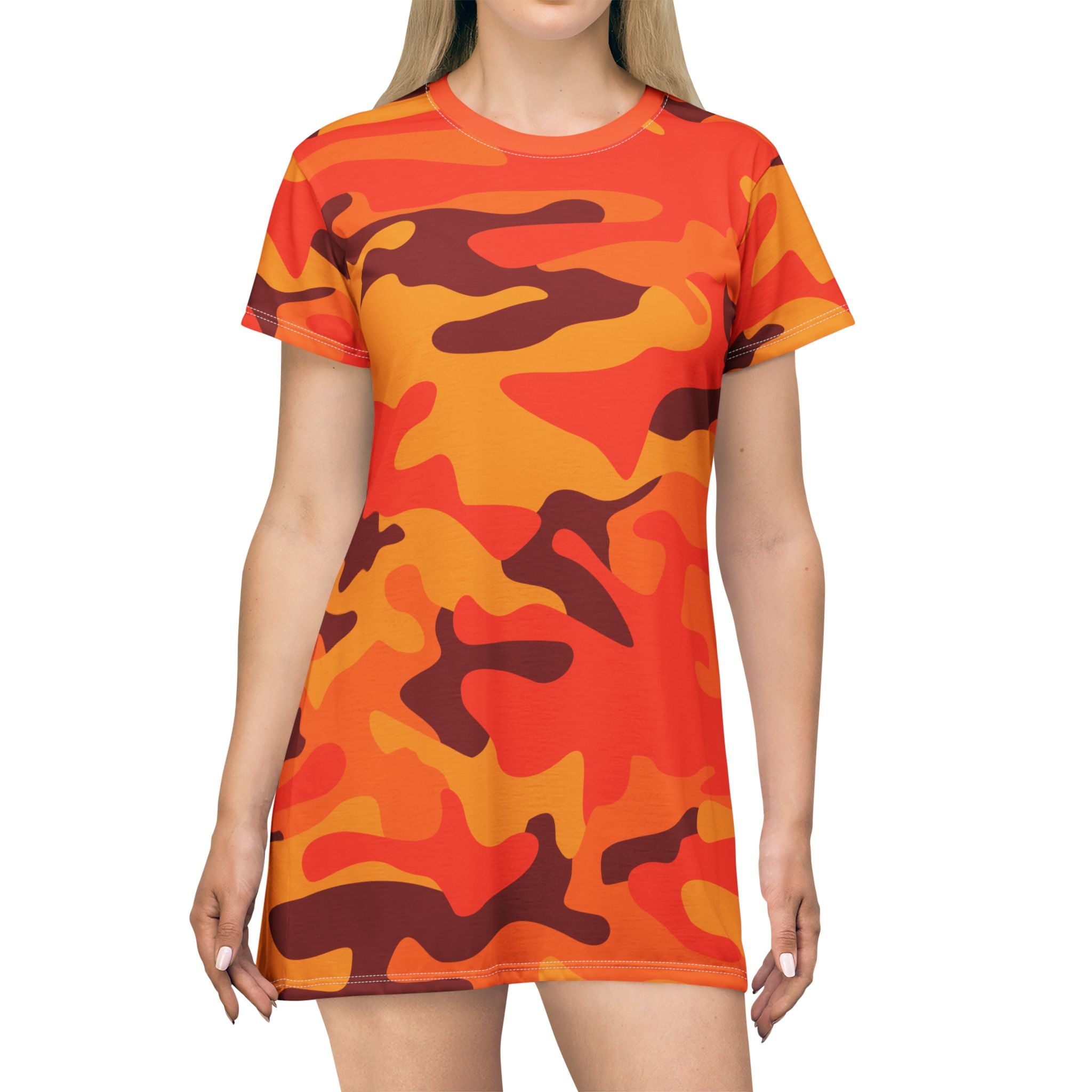 Camo T-Shirt Dress | Orange & Red Camouflage
