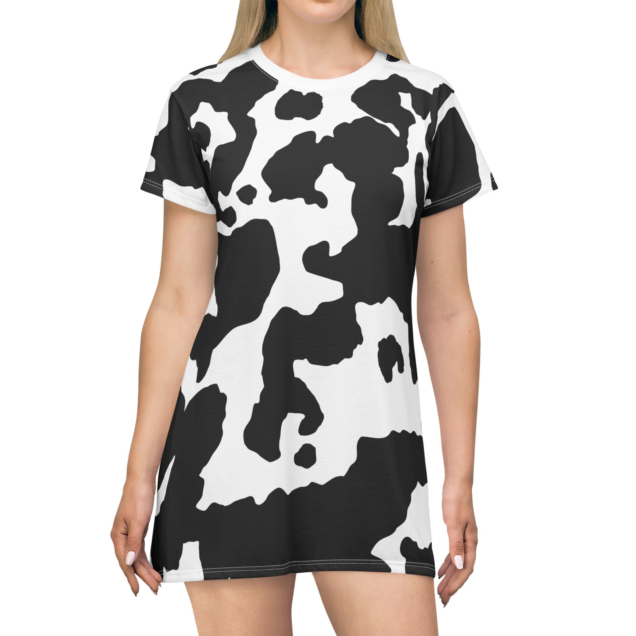 Camo T-Shirt Dress | Black and White Cow Camouflage