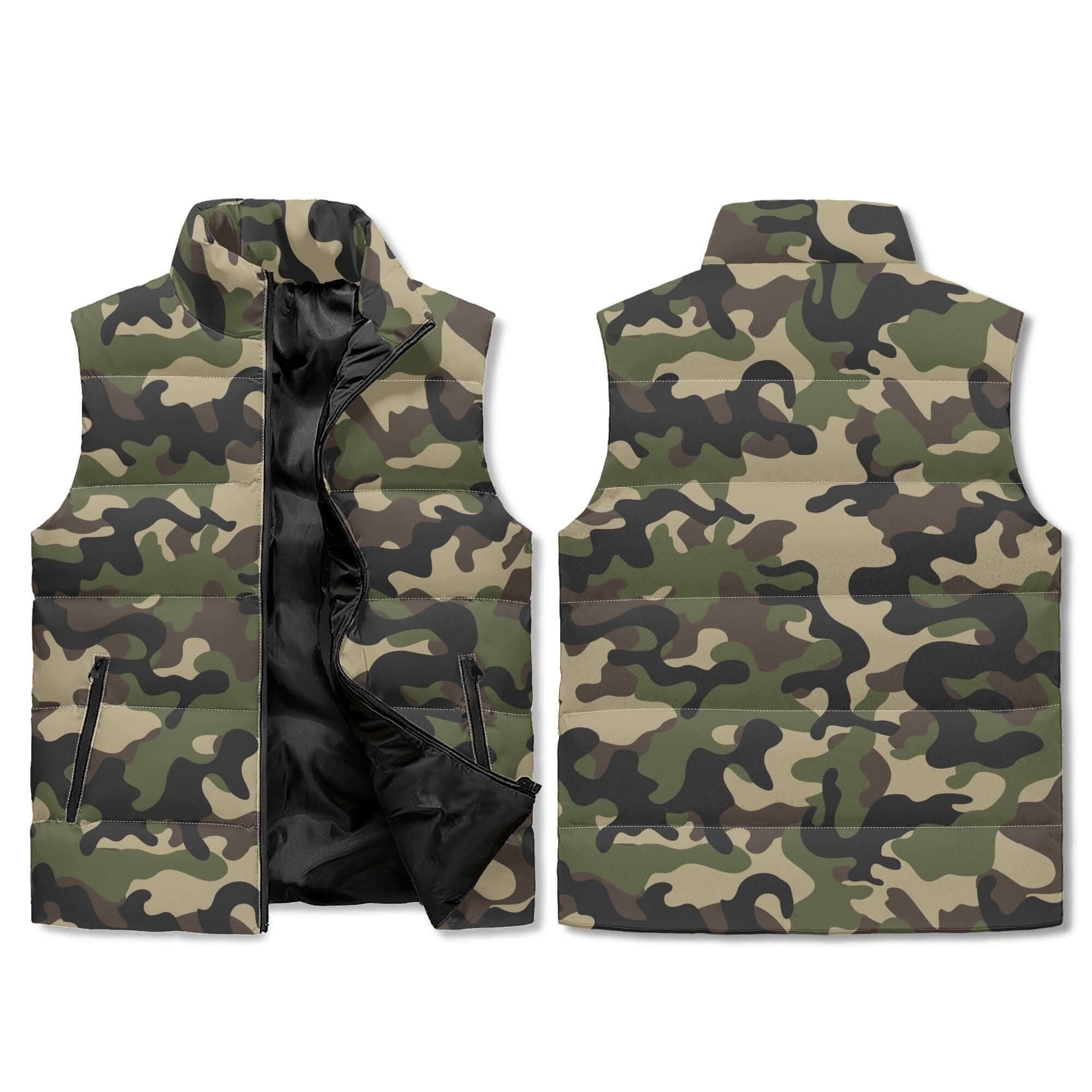 Camo Vest | Khaki Camouflage | Stand Collar Puffer Style