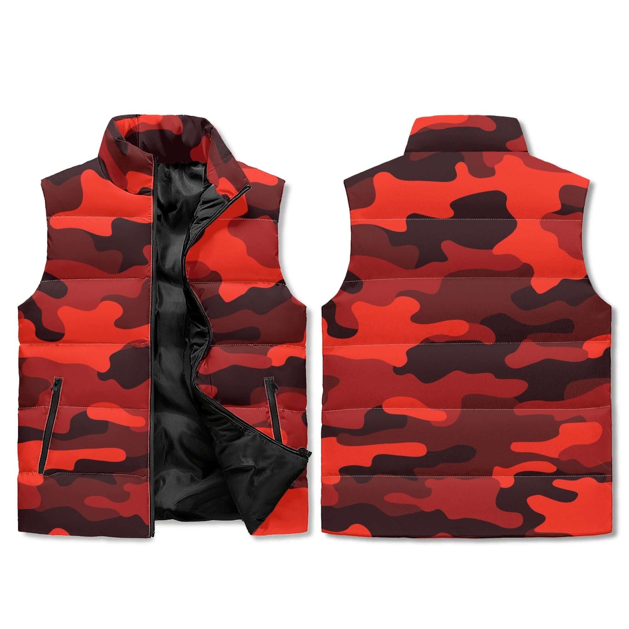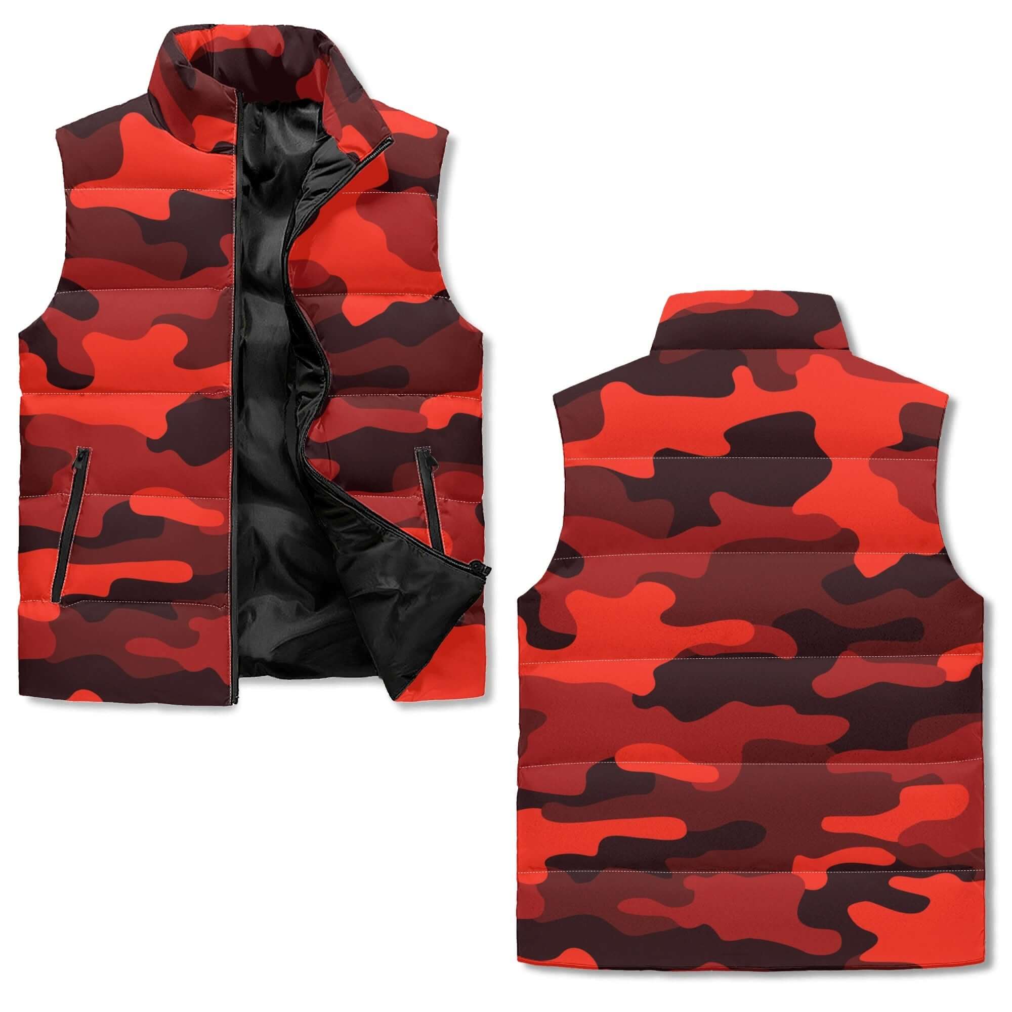 Camo Vest in Red & Black Camouflage Print | Stand Collar Puffer