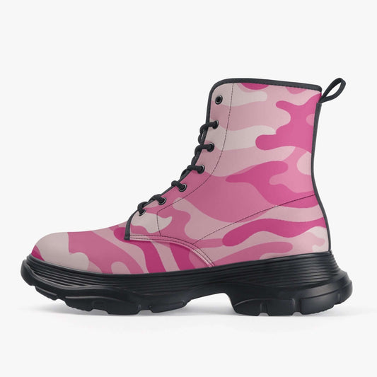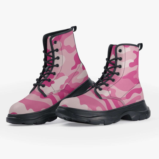 Chunky Boots | Leather in Lavender Pink Camouflage