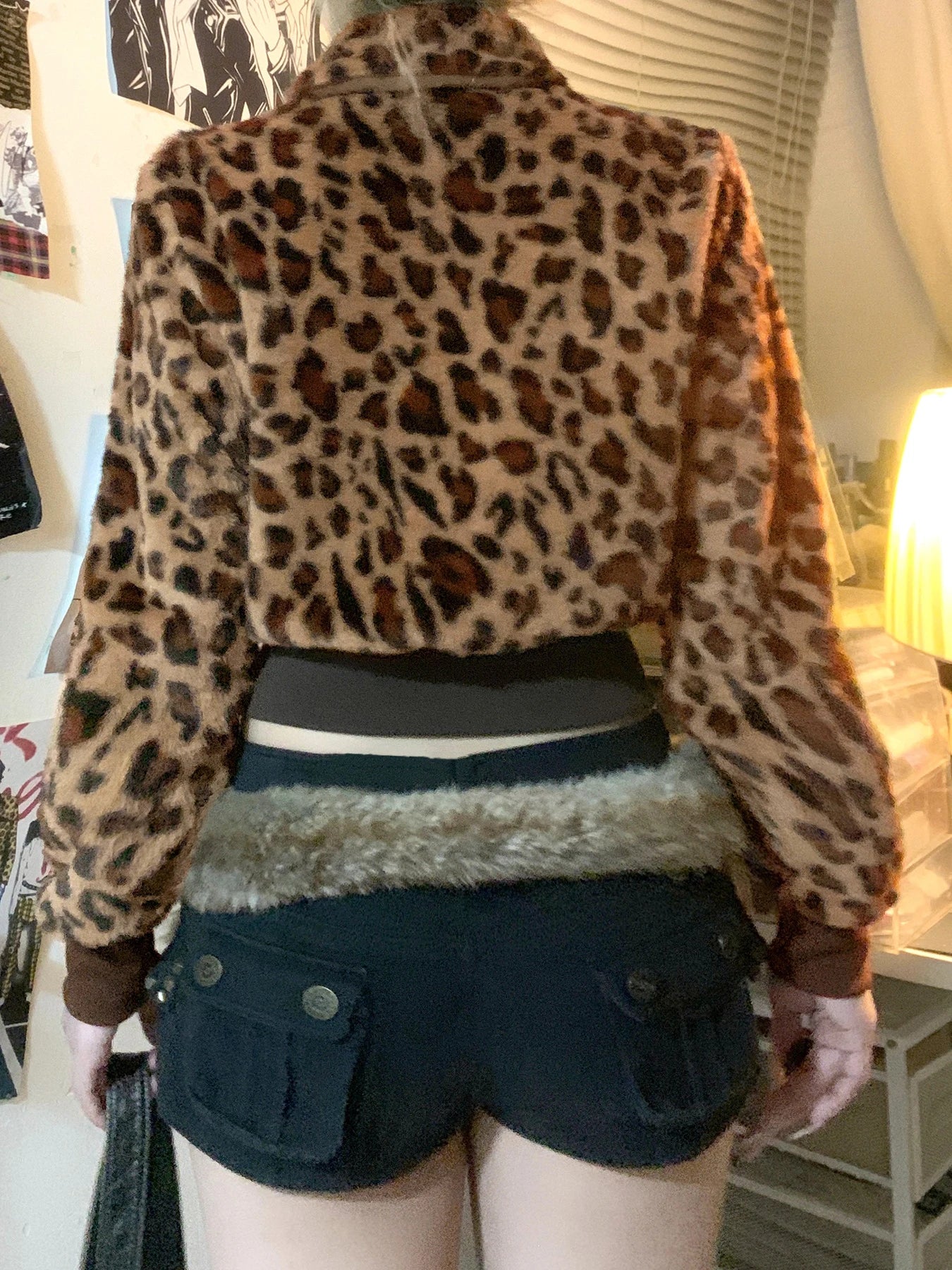Y2K Leopard Print Velvet Zip-Up Hoodie